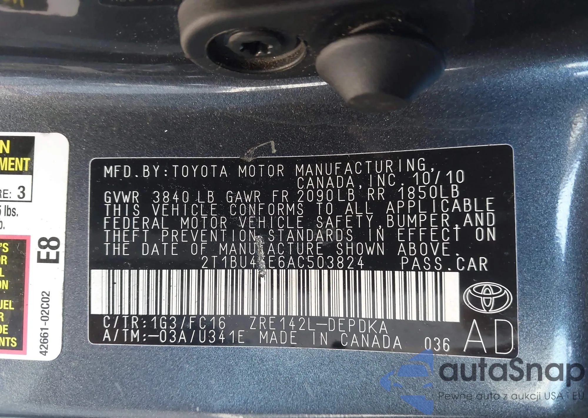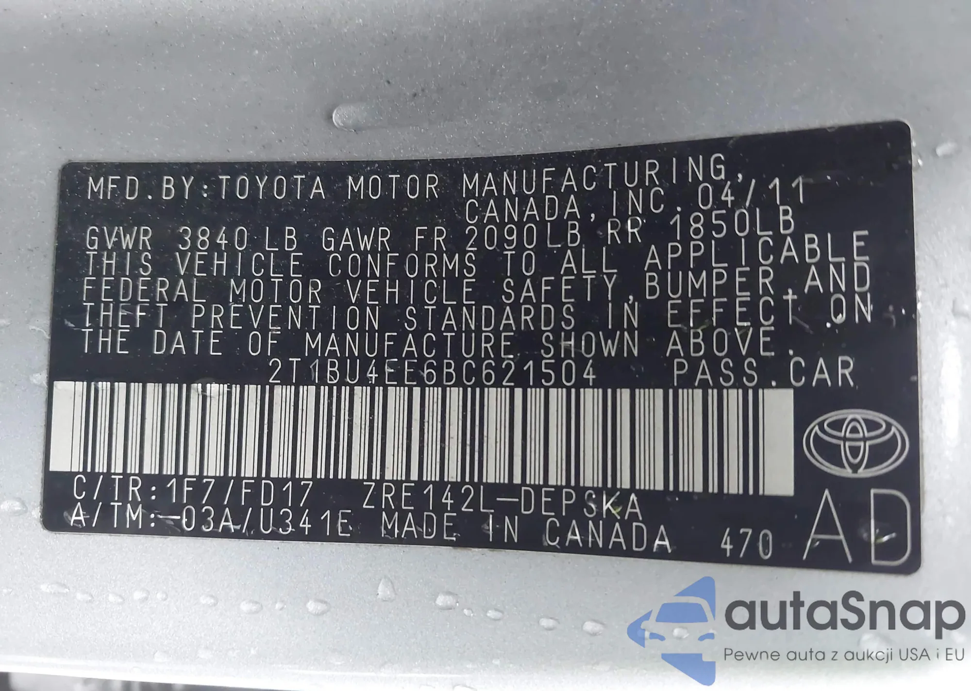 • VIN 2T1BU4EE6BC621504