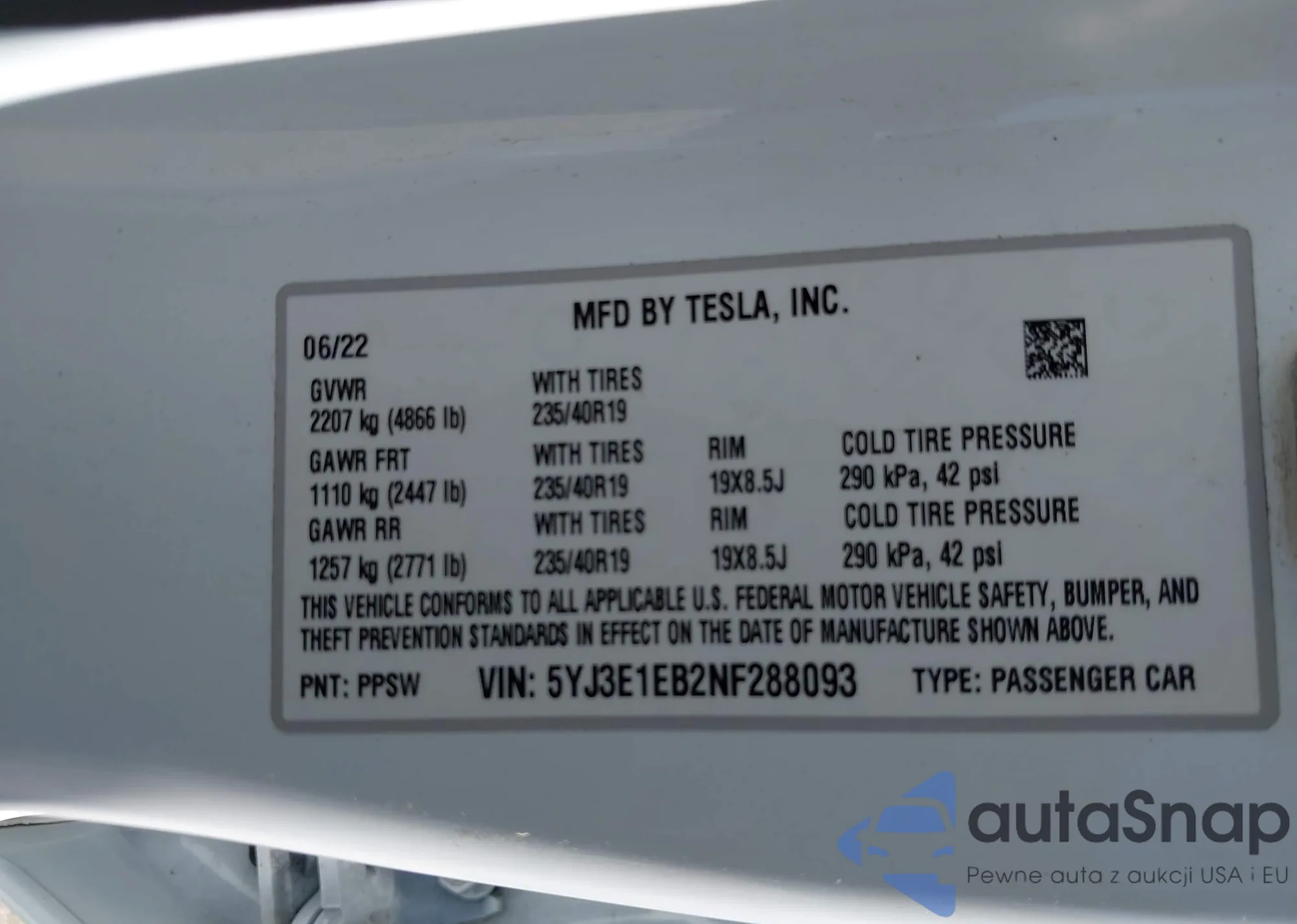 • VIN 5YJ3E1EA2JF166402