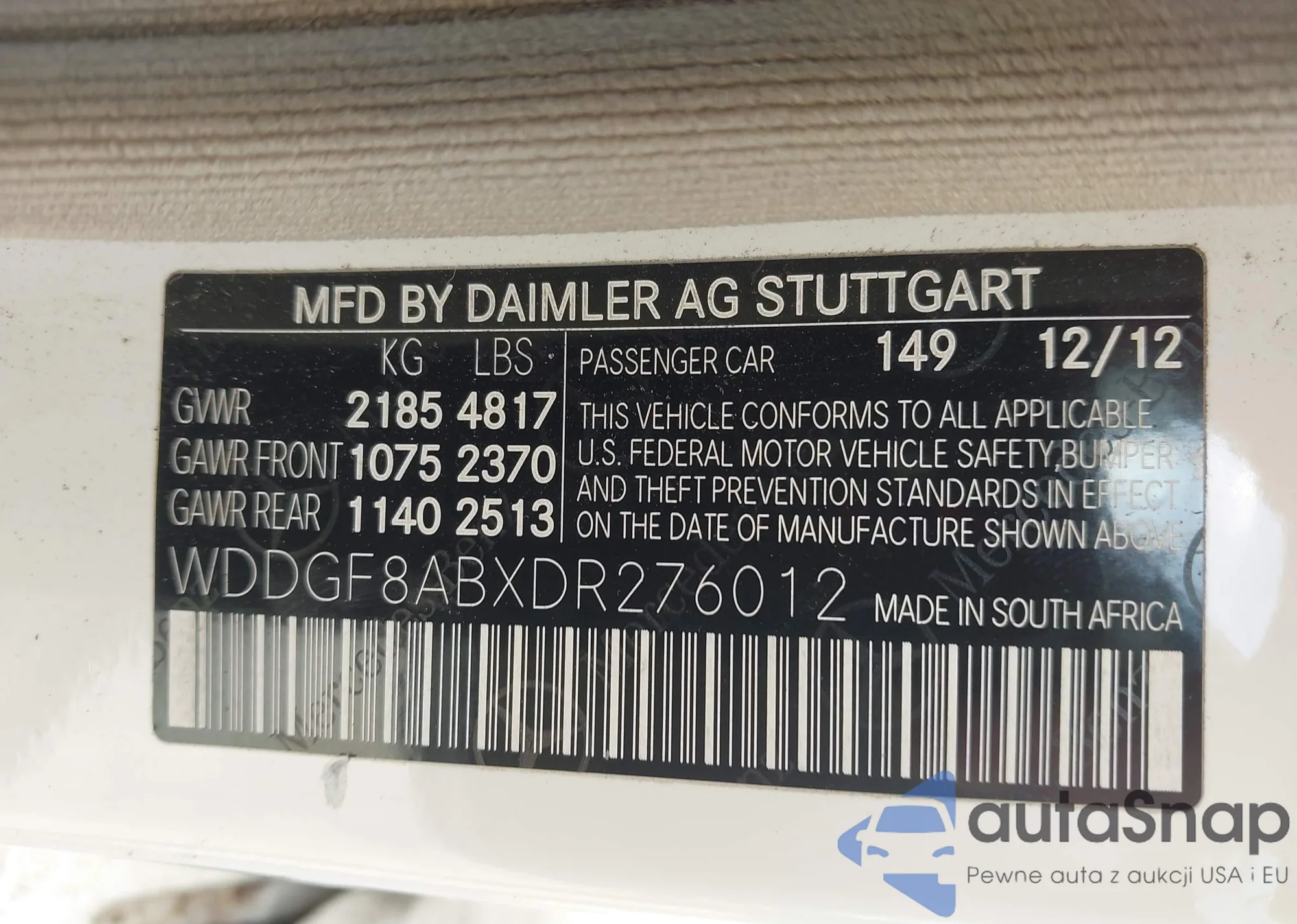 • VIN WAUAF78EX6A039433