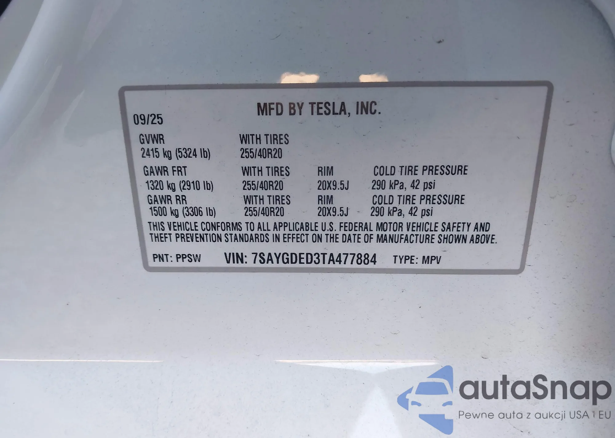 LOT: 43632734 VIN: 7SAYGDED3TA477884