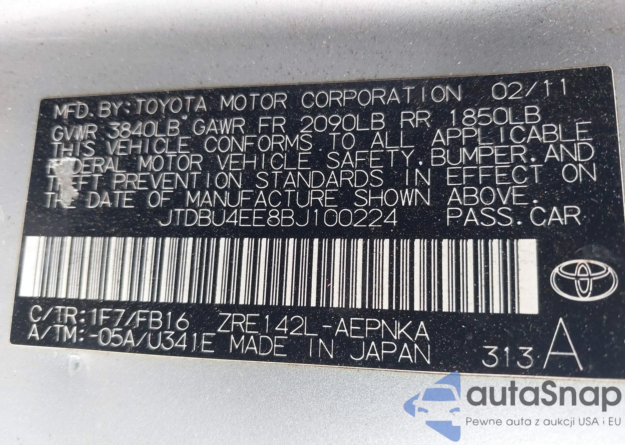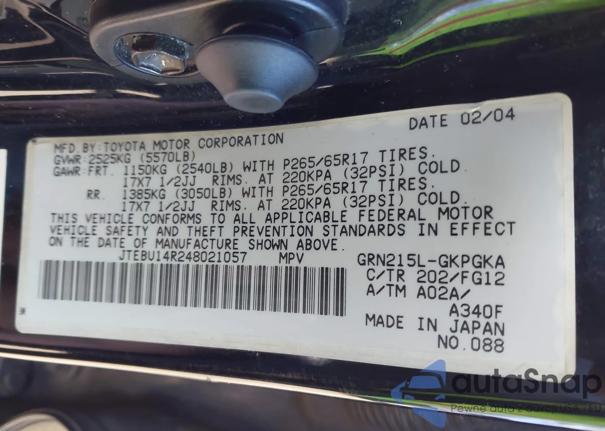 LOT: 43946319 VIN: JTEBU14R248021057
