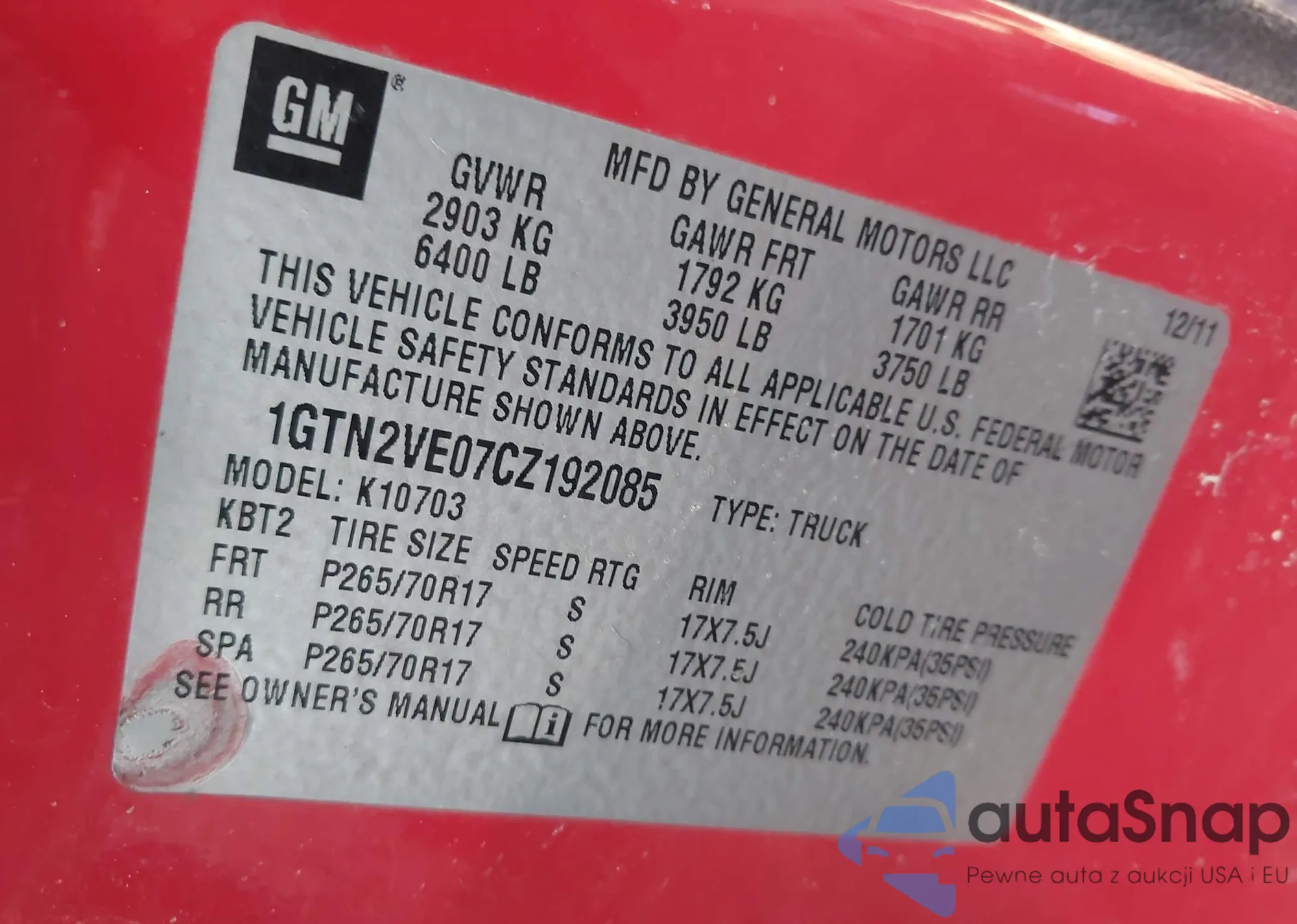• VIN 1GTN2VE07CZ192085