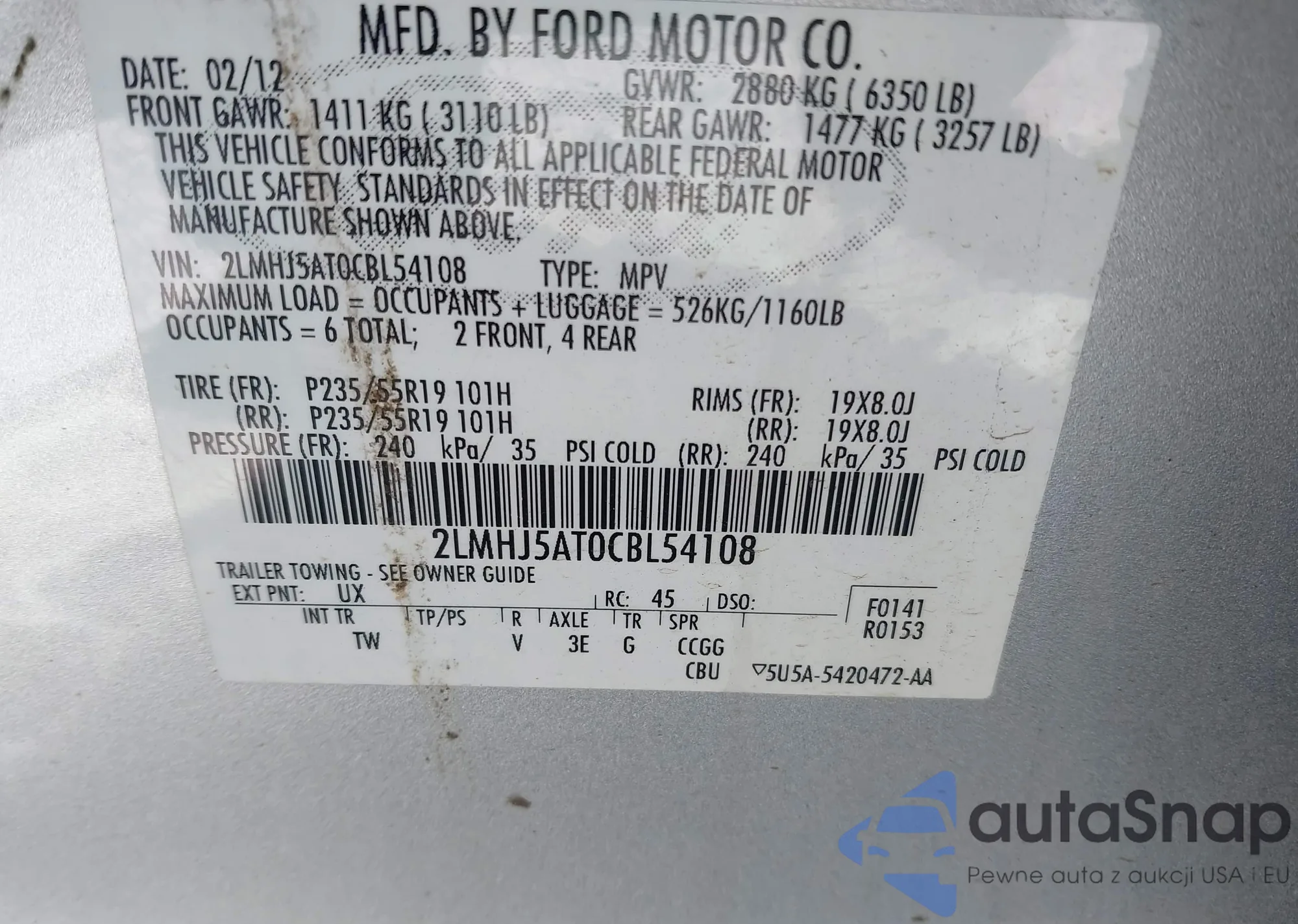 LOT: 43882186 VIN: 1FTFW1ET7CFB85229