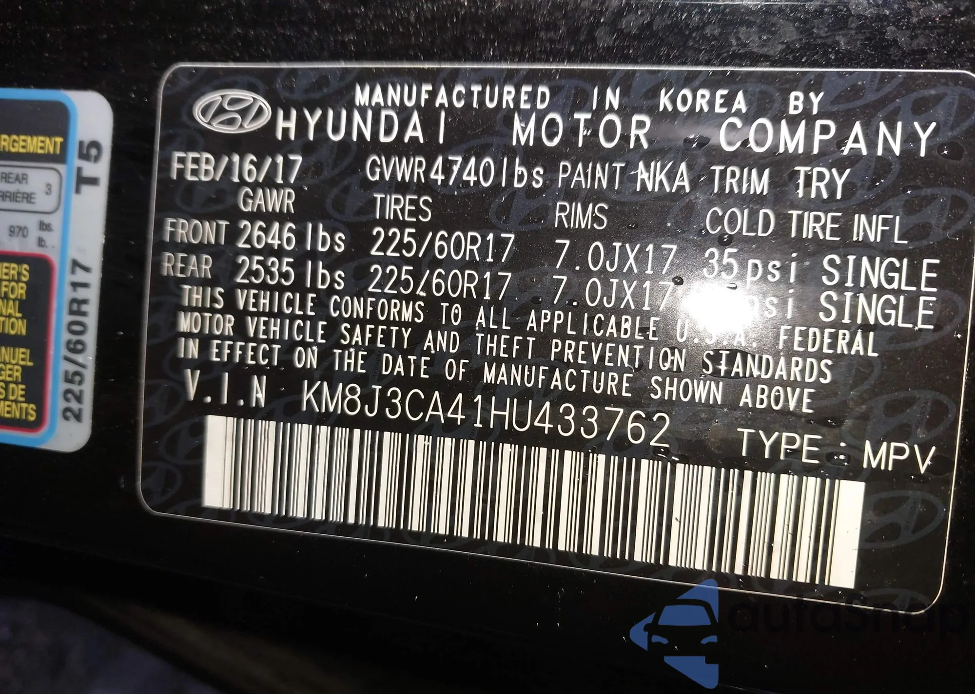 • VIN 5NPE34AF1FH043877