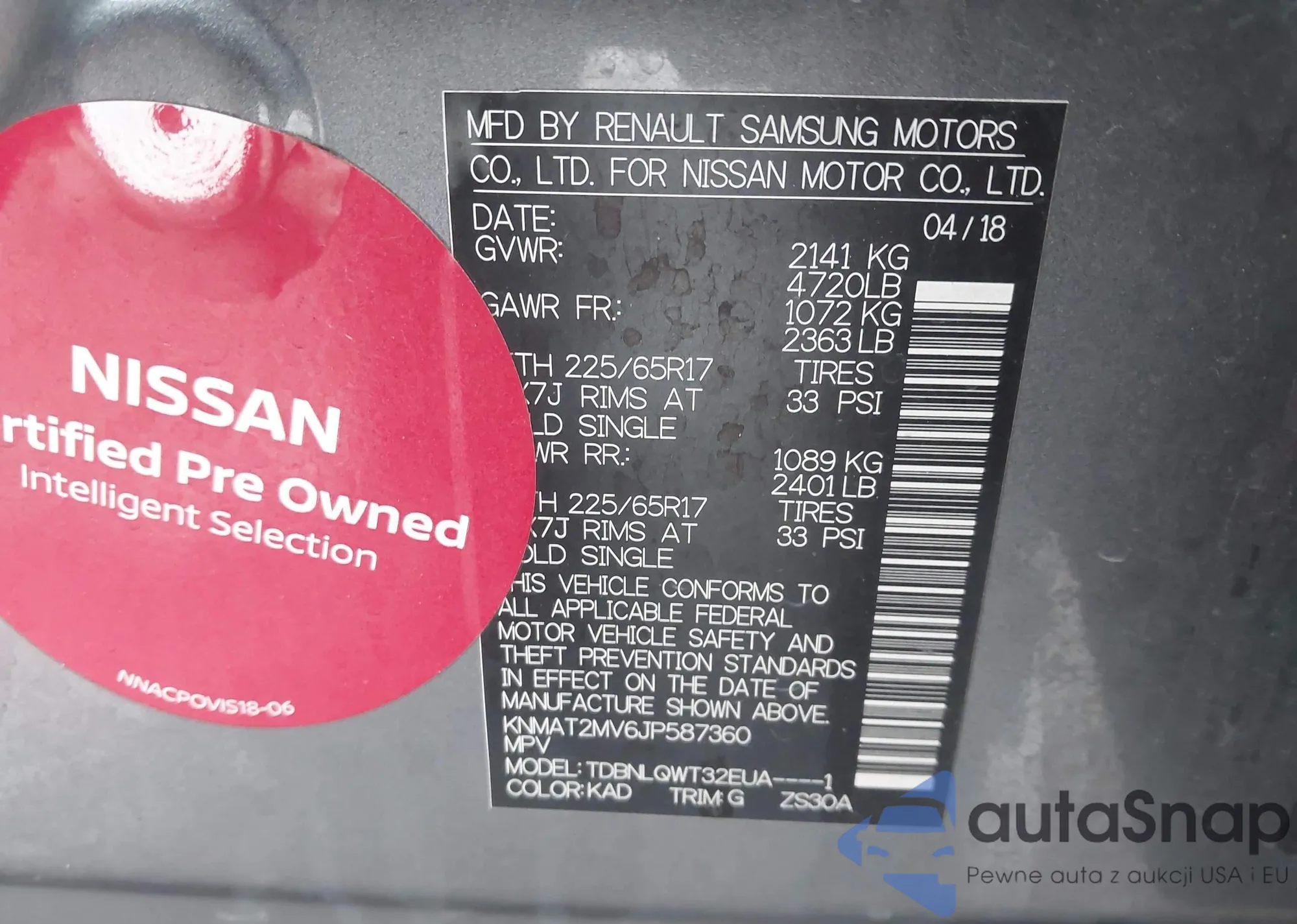 2018 Nissan Rogue Sv из США, поврежденный, VIN KNMAT2MV6JP587360