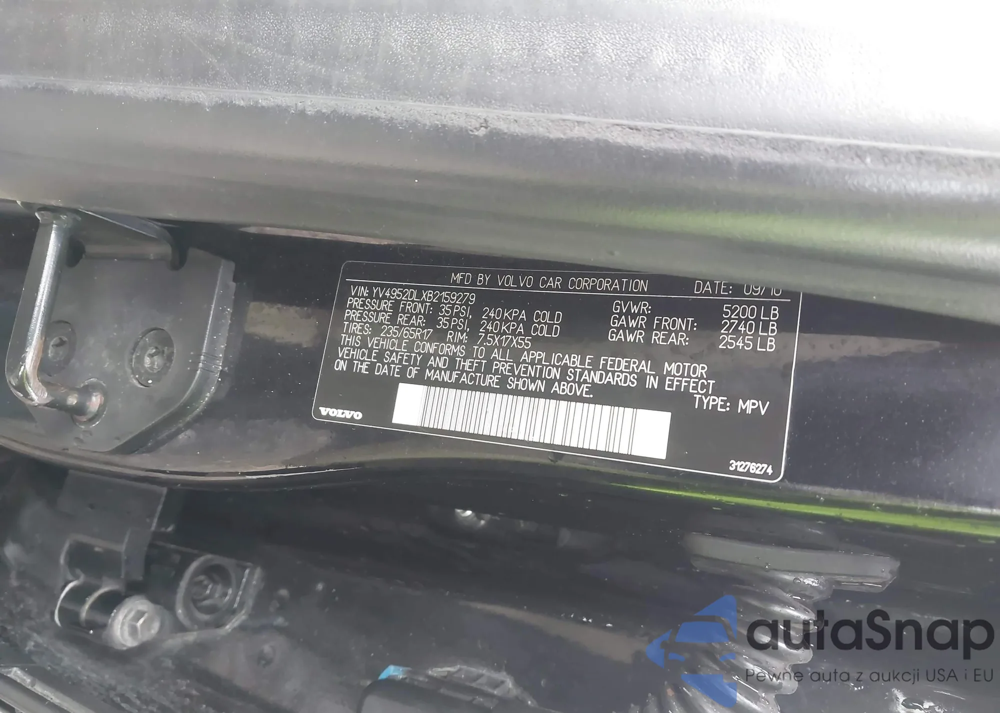 • VIN YV4952DLXB2159279