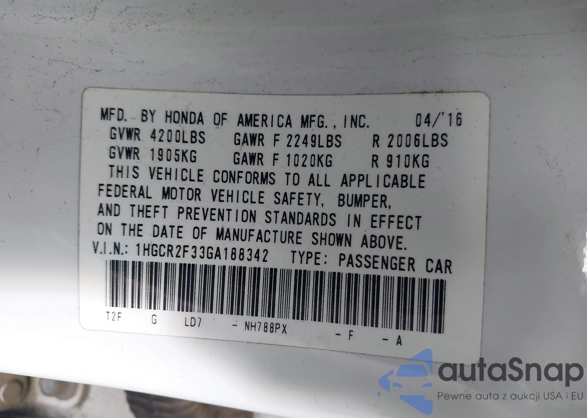 LOT: 43957681 VIN: JHLRD77464C049580