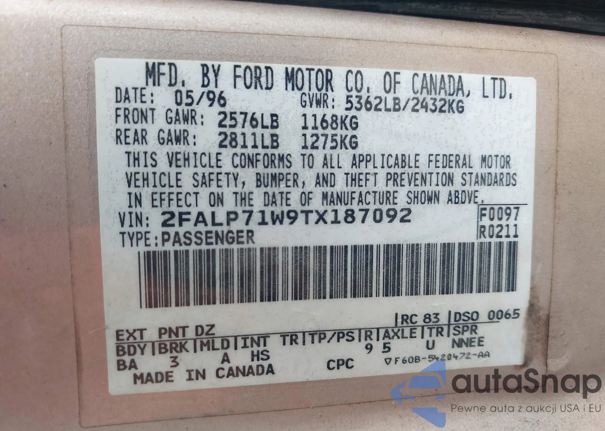 • VIN 2FALP71W9TX187092