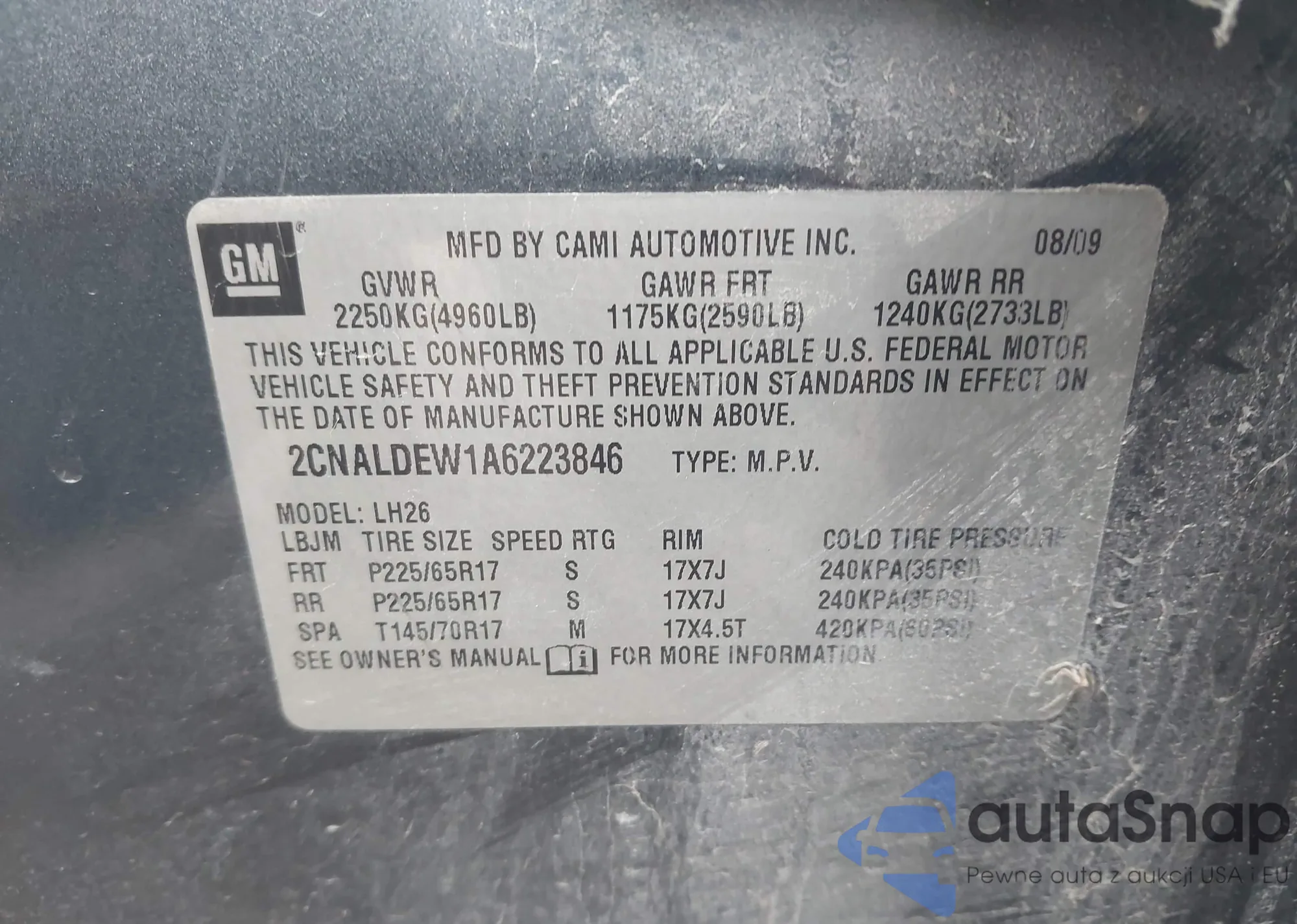 LOT: 43730785 VIN: 2CNALDEW1A6223846