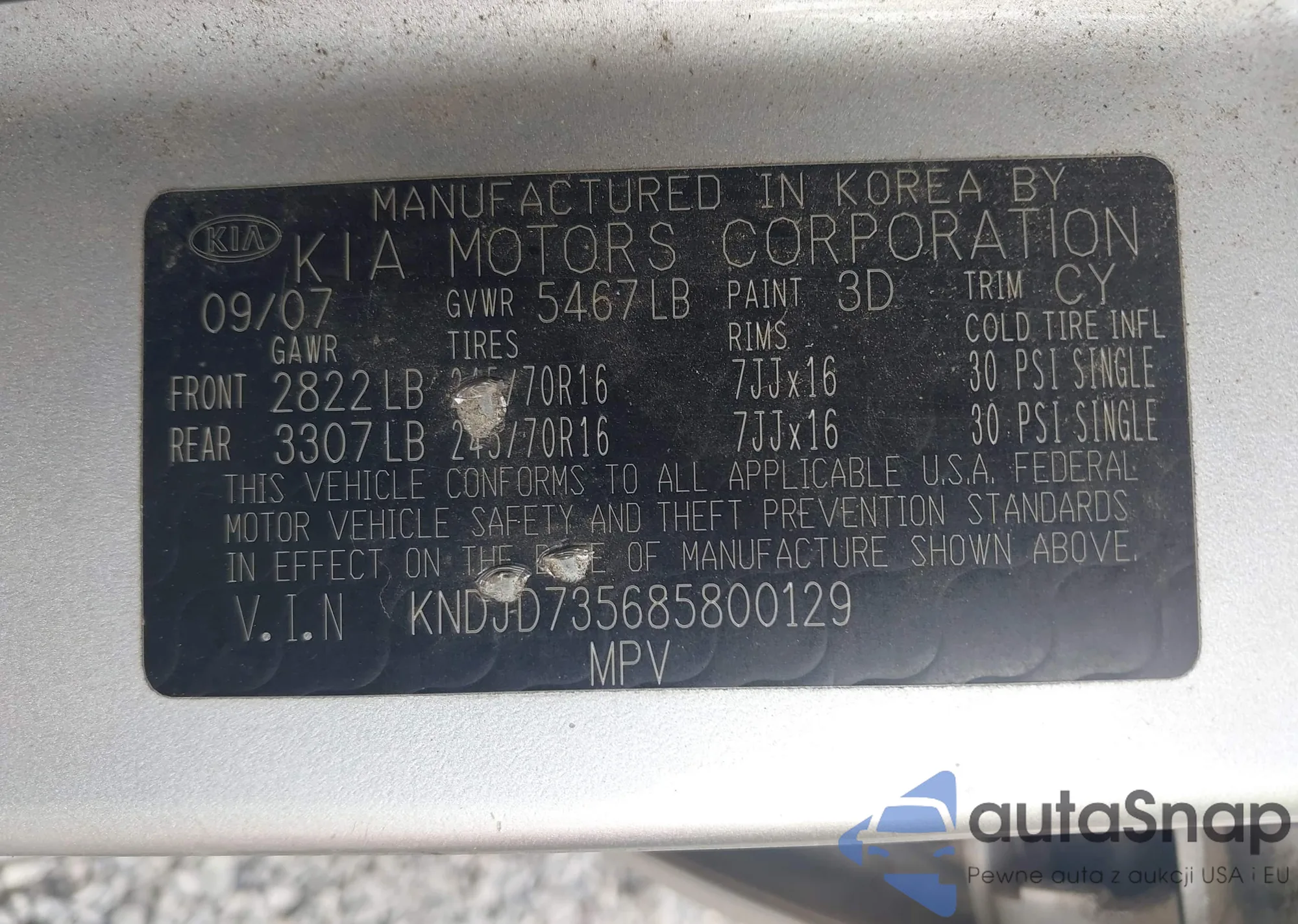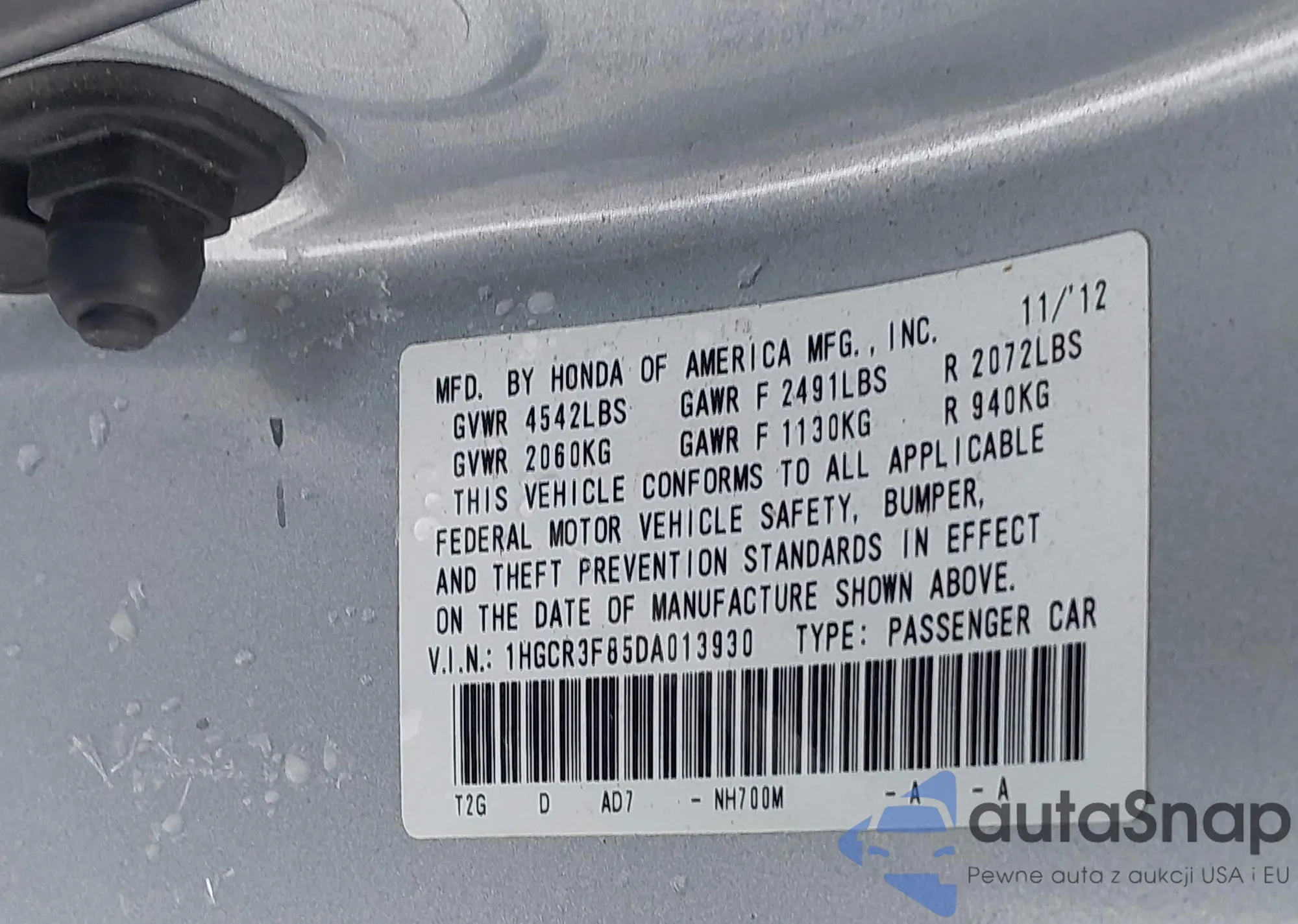 • VIN 1HGCR3F85DA013930