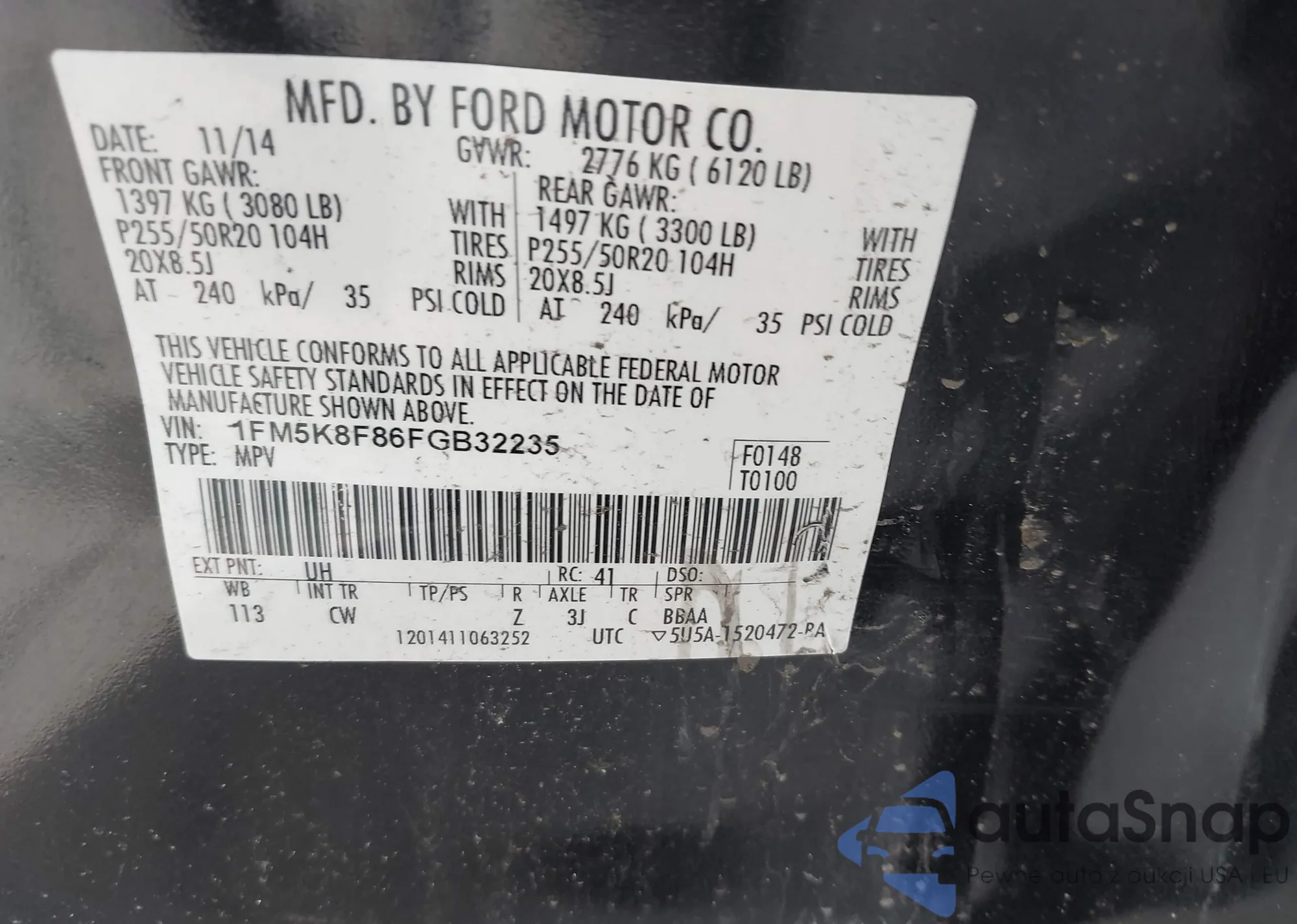 LOT: 43781418 VIN: 1FMSK7FH1RGA69725