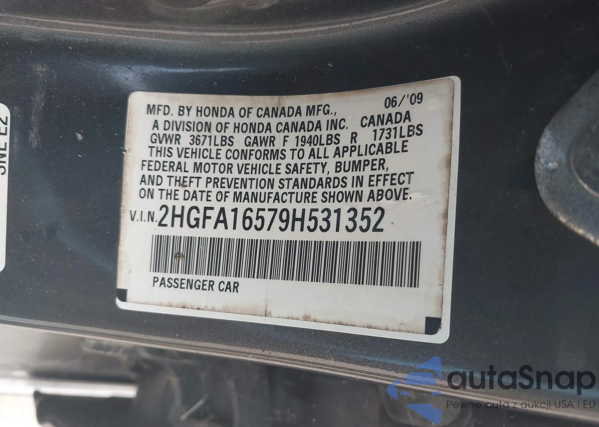 • VIN 2HGFA16579H531352