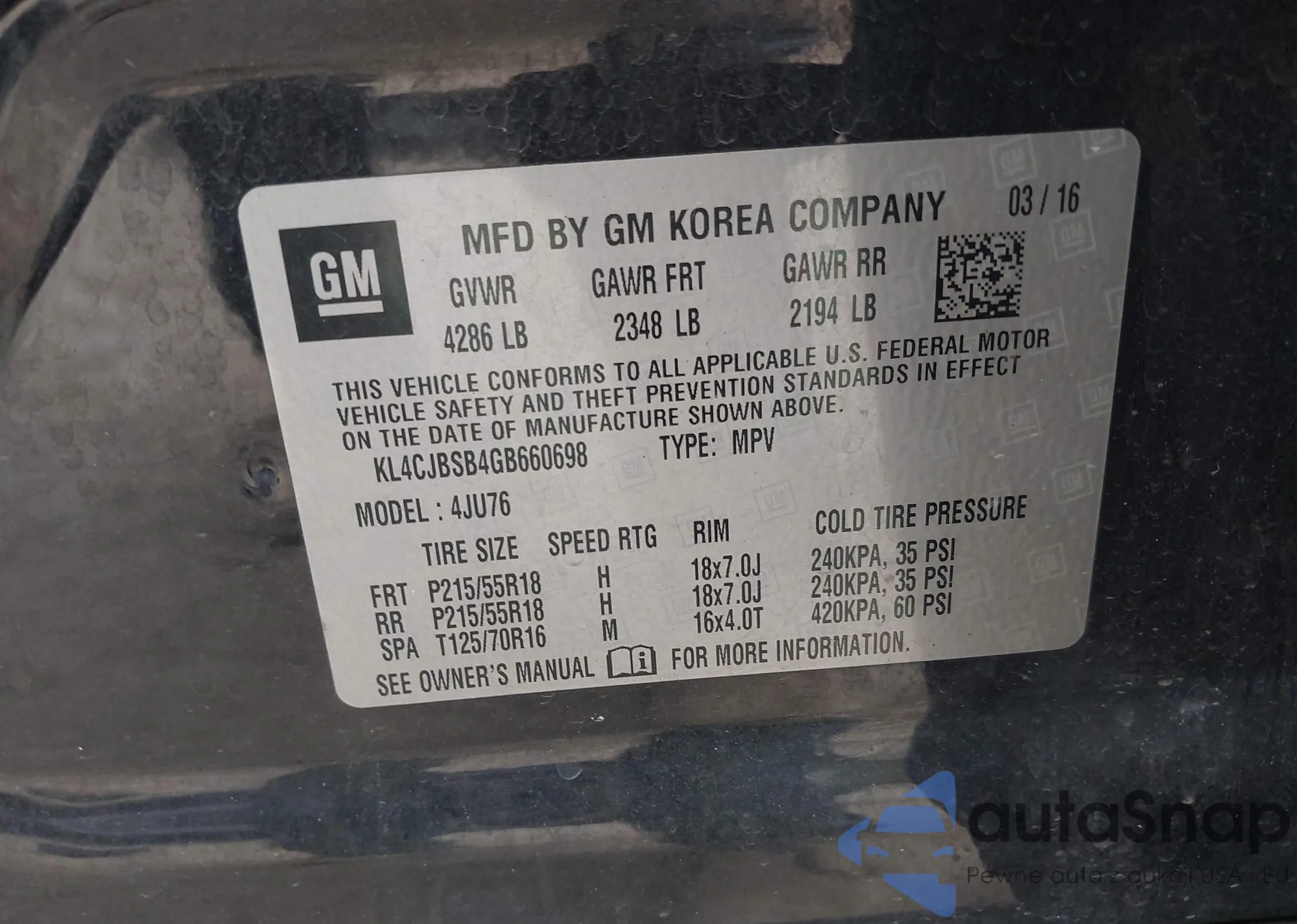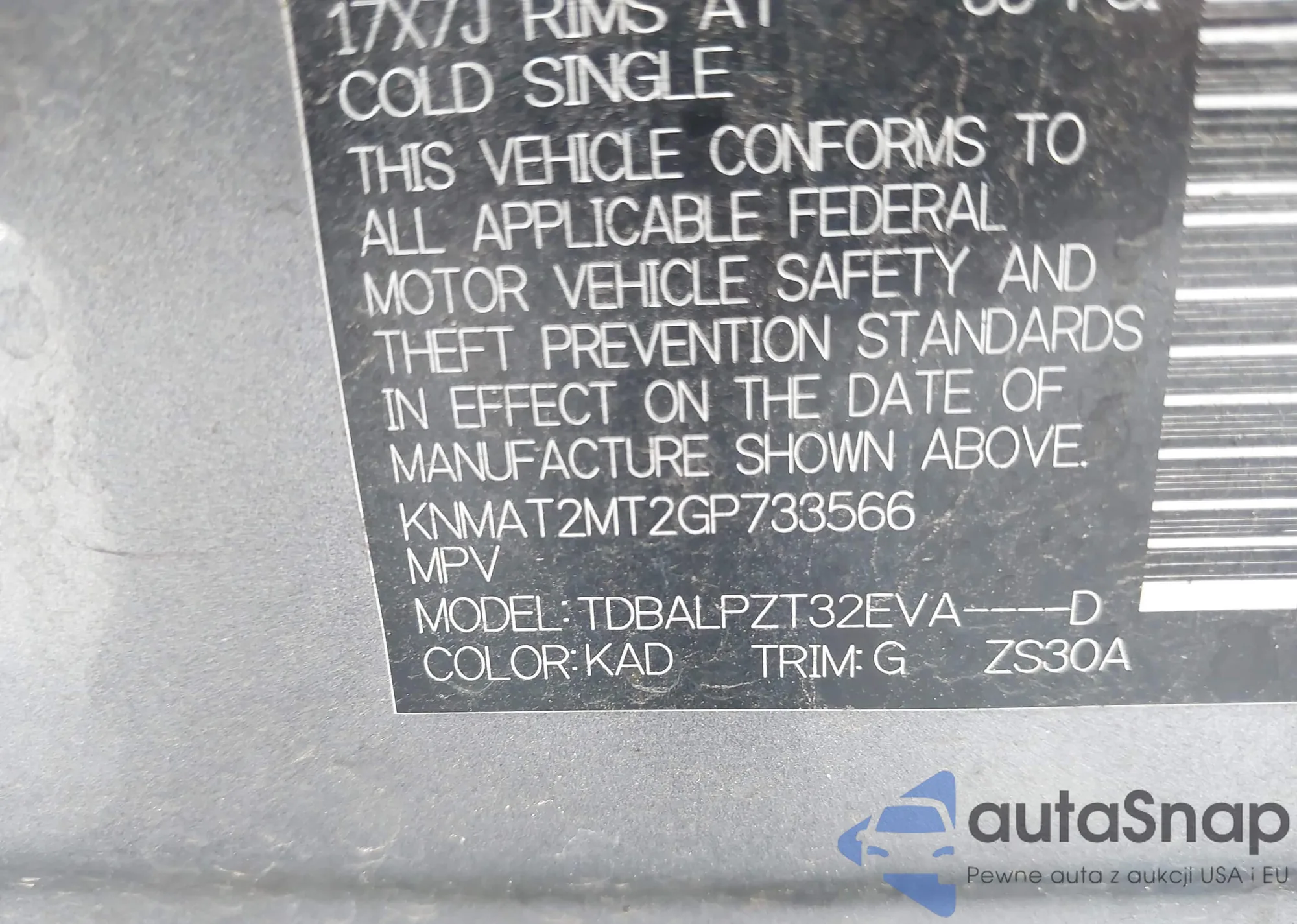 LOT: 43430009 VIN: KNMAT2MT2GP733566