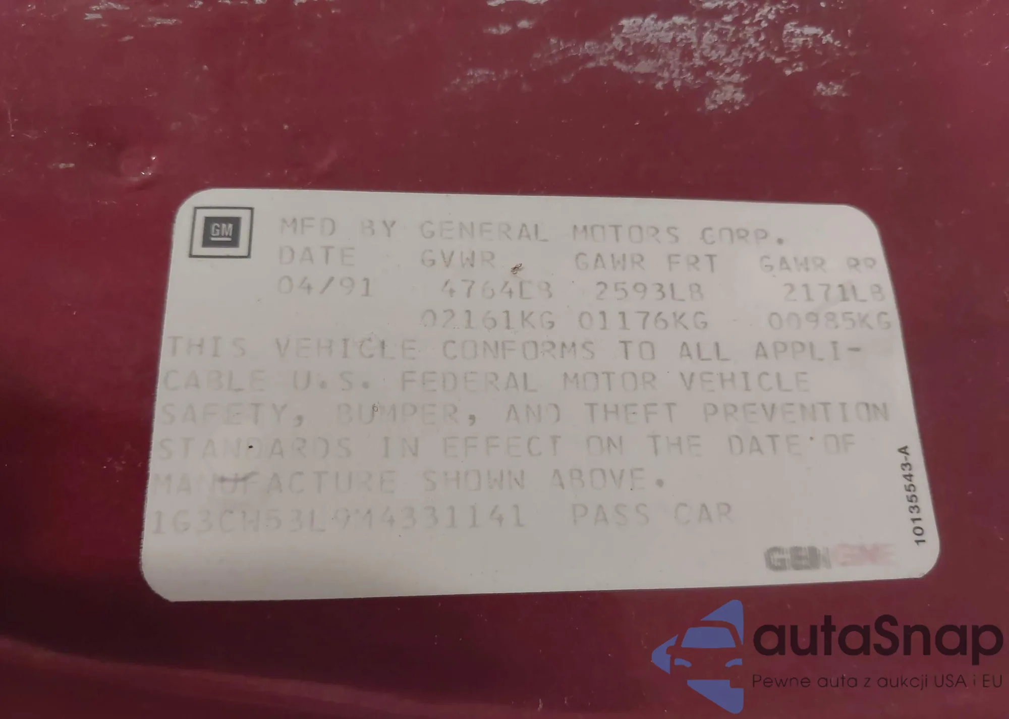 • VIN 3G1BE6SM7HS610424