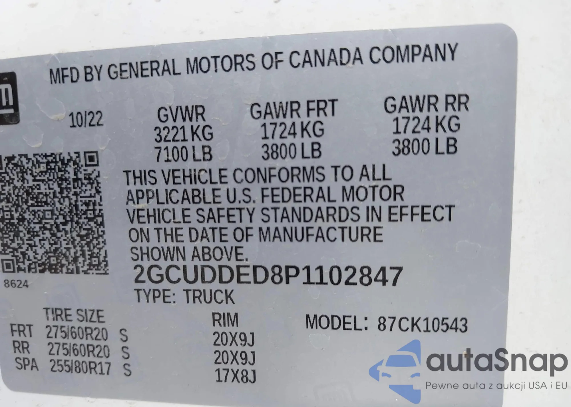 LOT: 43490009 VIN: 2GCUDDED8P1102847