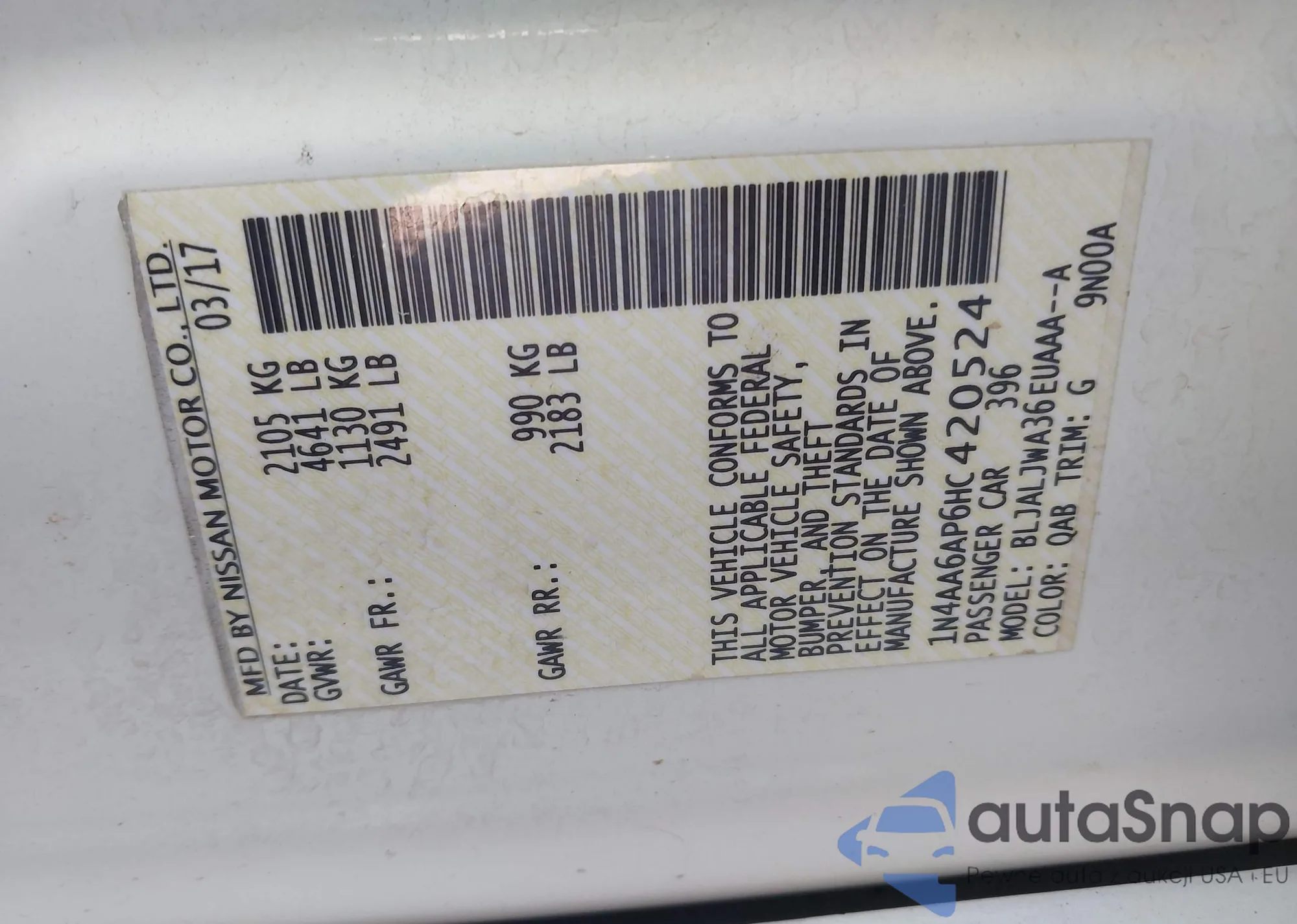 LOT: 43735655 VIN: 5N1BA0ND6AN620126