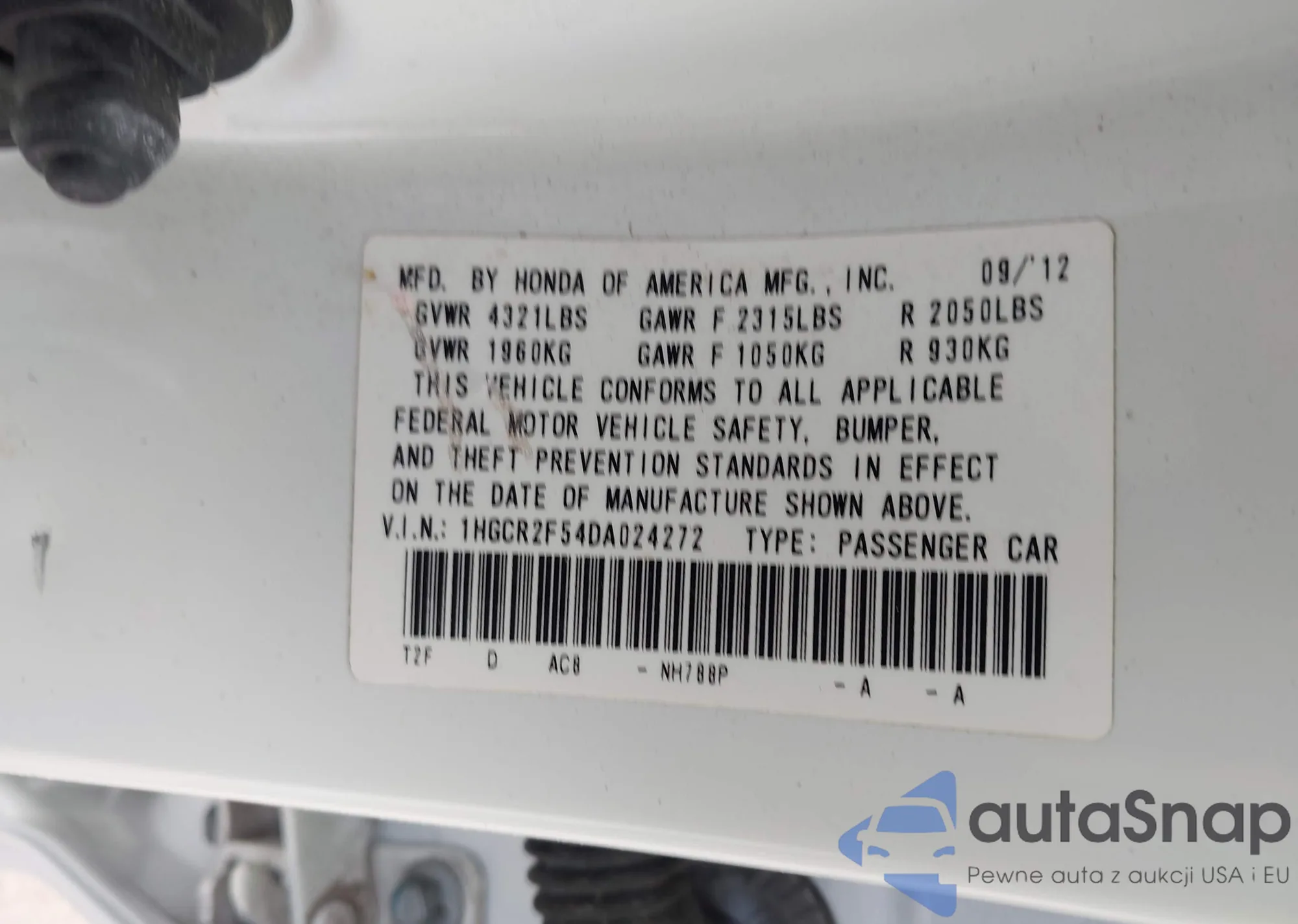 • VIN 1HGCR2F54DA024272