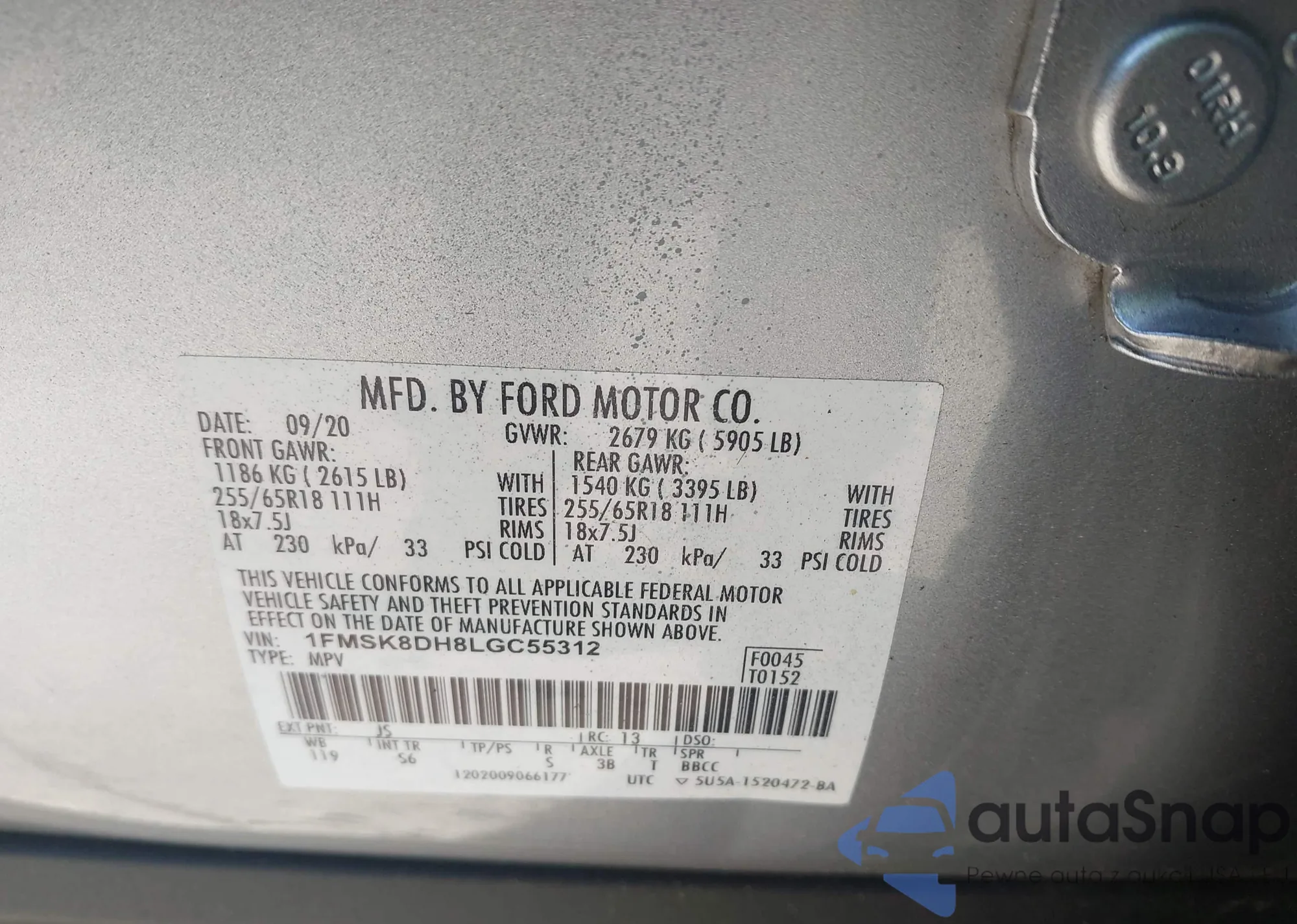 LOT: 43819475 VIN: 1FA6P8TH3N5140517