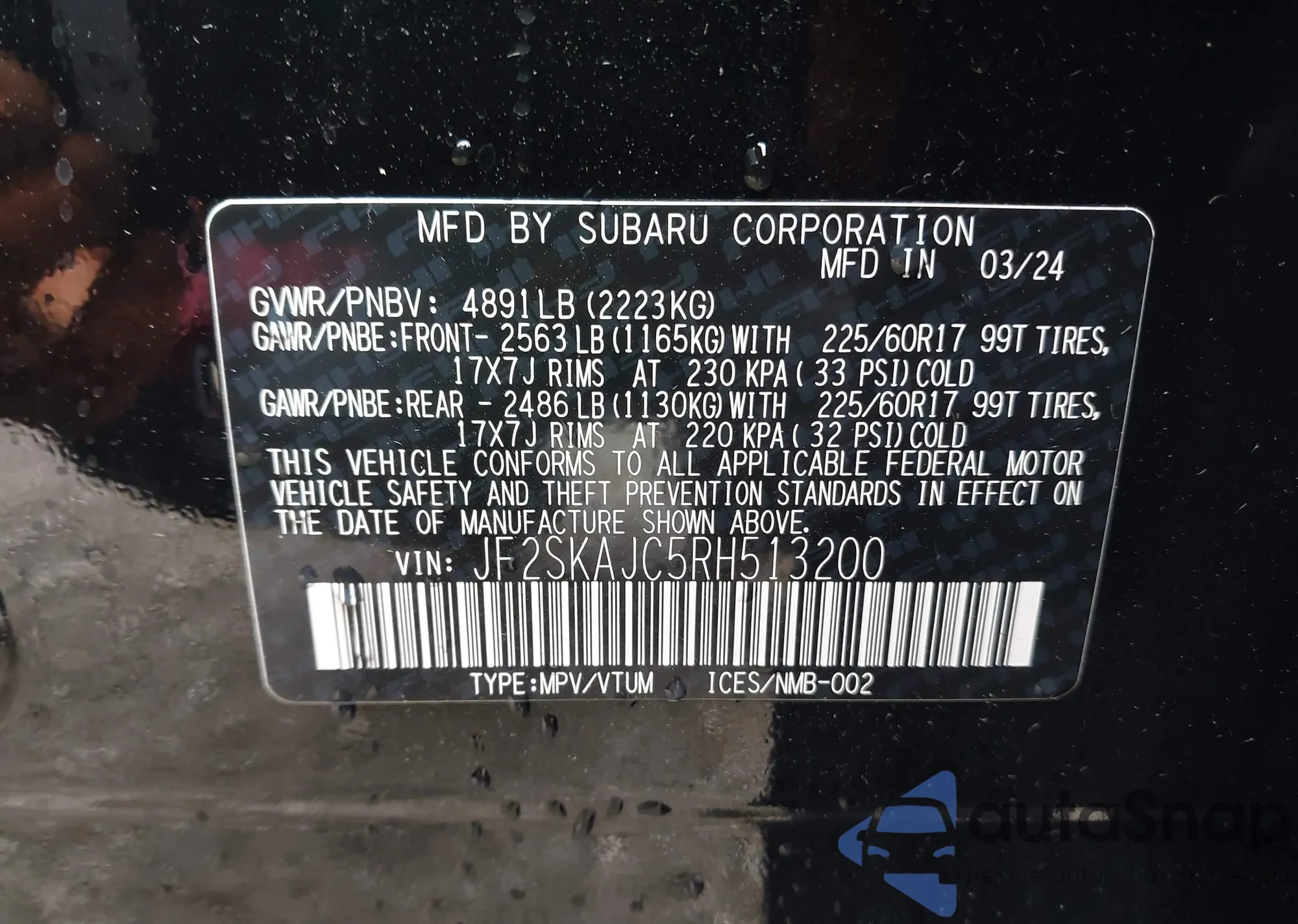 • VIN JF2SKAJC5RH513200