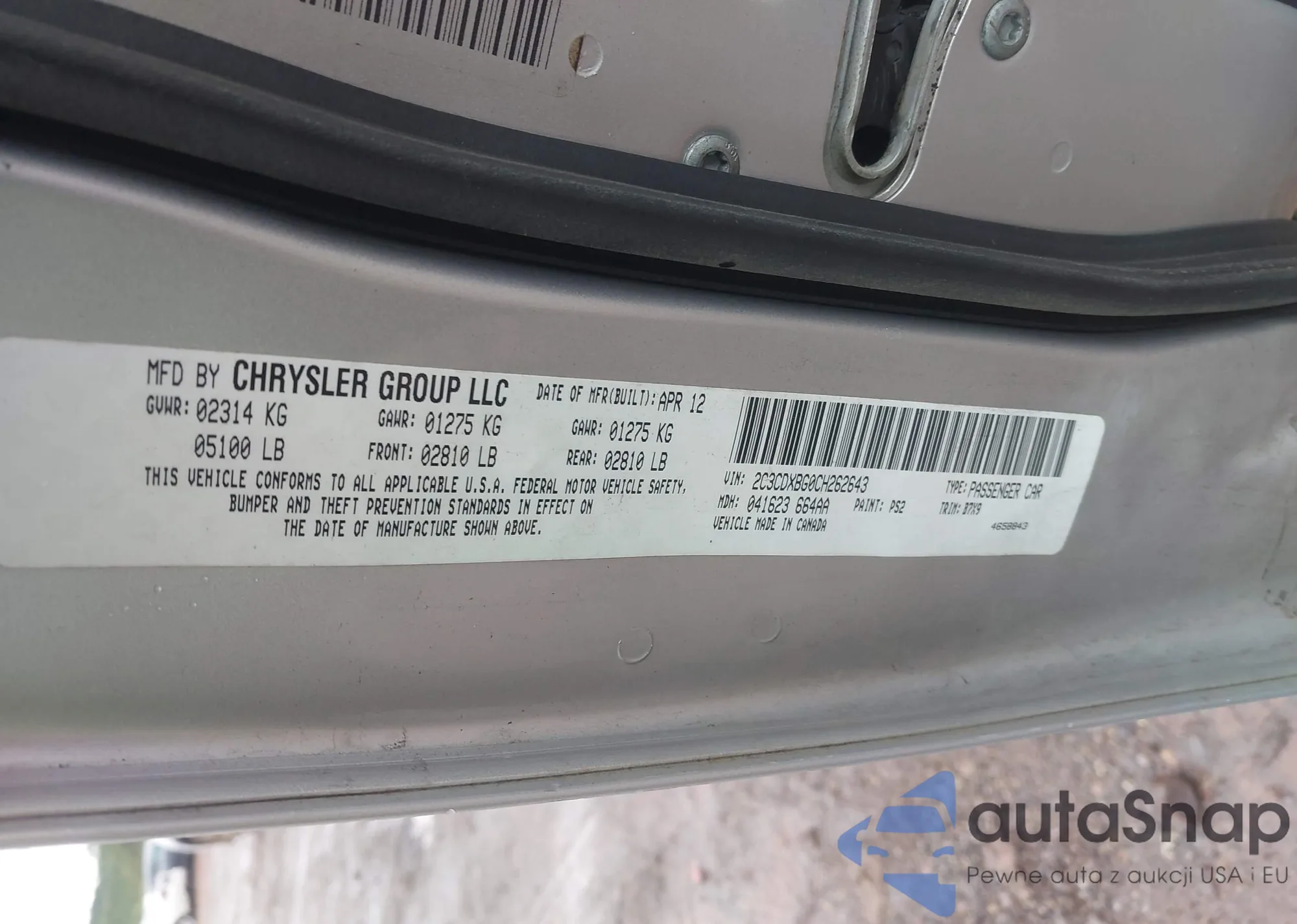 LOT: 43571862 VIN: 2C3CDXBG0CH262643