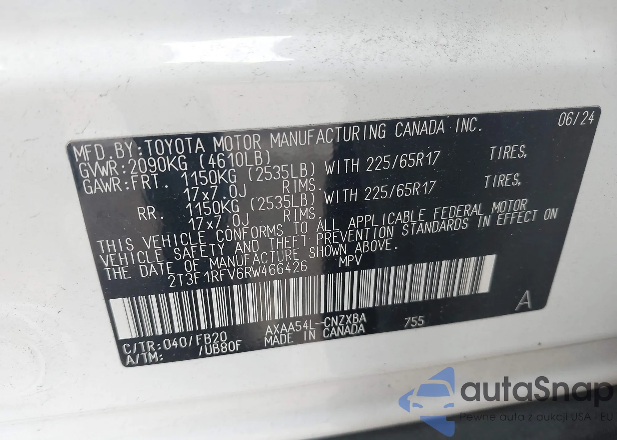 • VIN 2T3F1RFV6RW466426