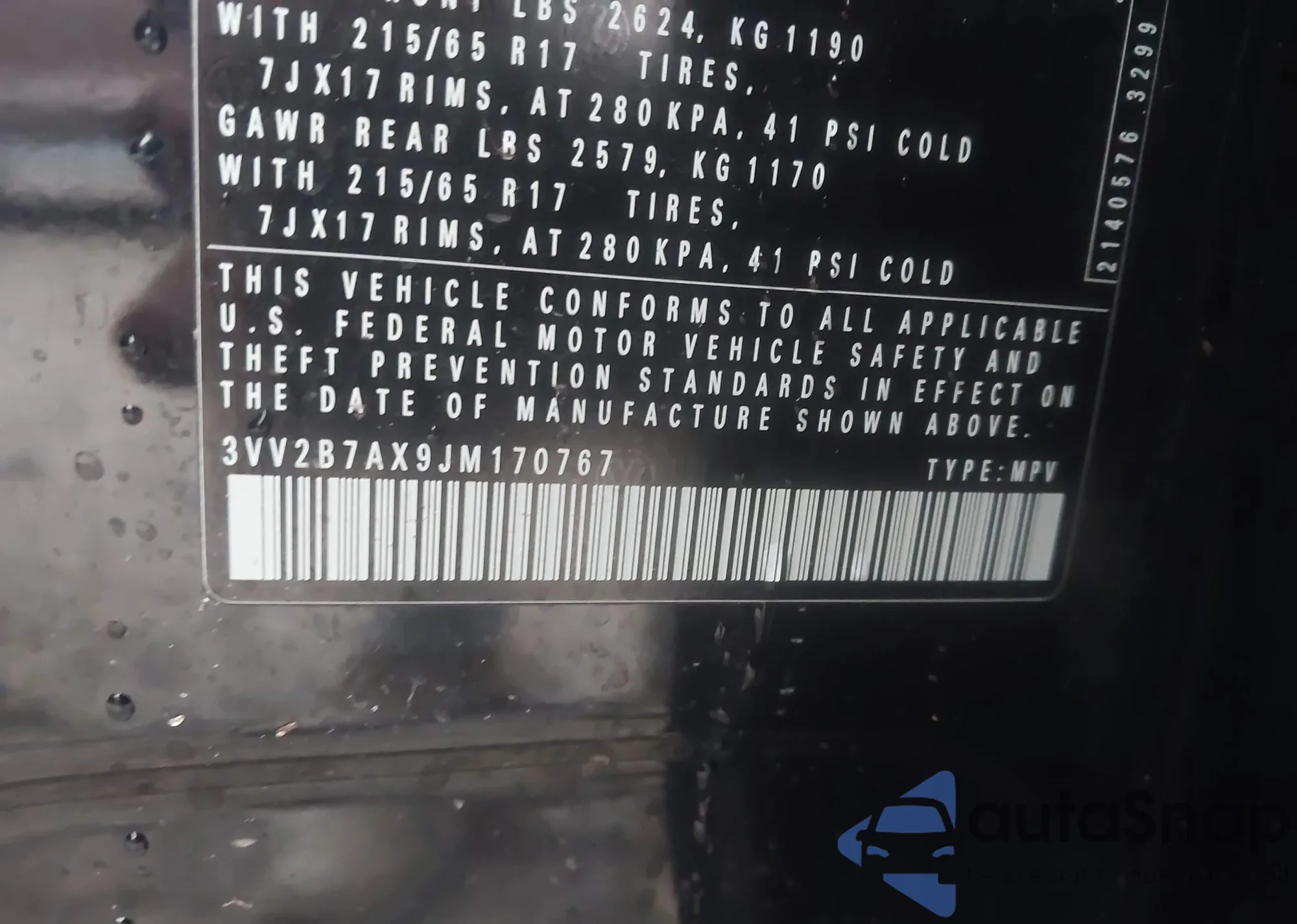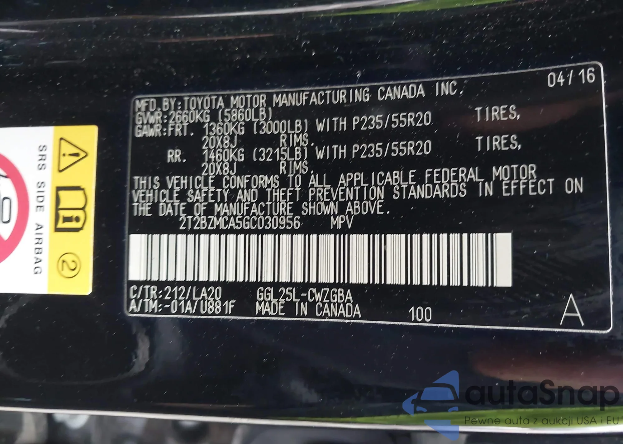 LOT: 43399817 VIN: WA16AAFY2P2127318