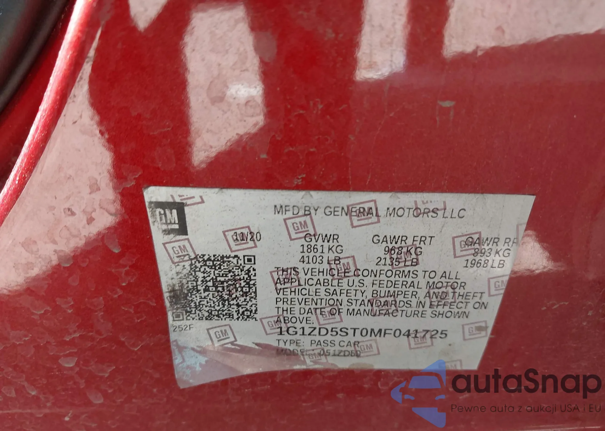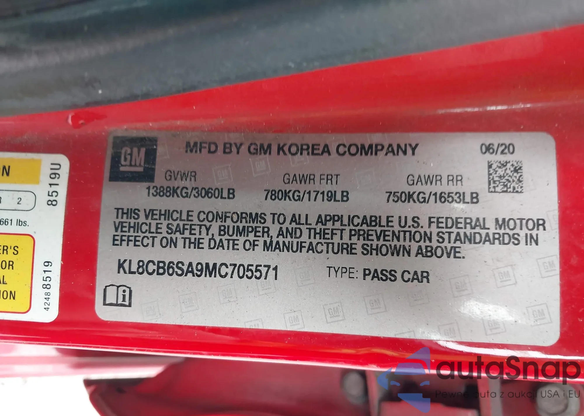 • VIN KL8CB6SA9MC705571