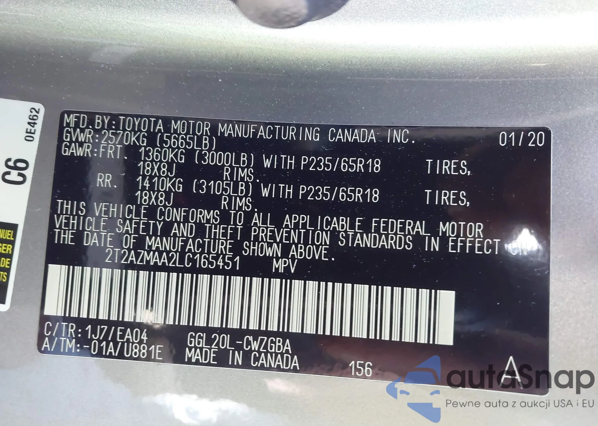 • VIN 2T2AZMAA2LC165451
