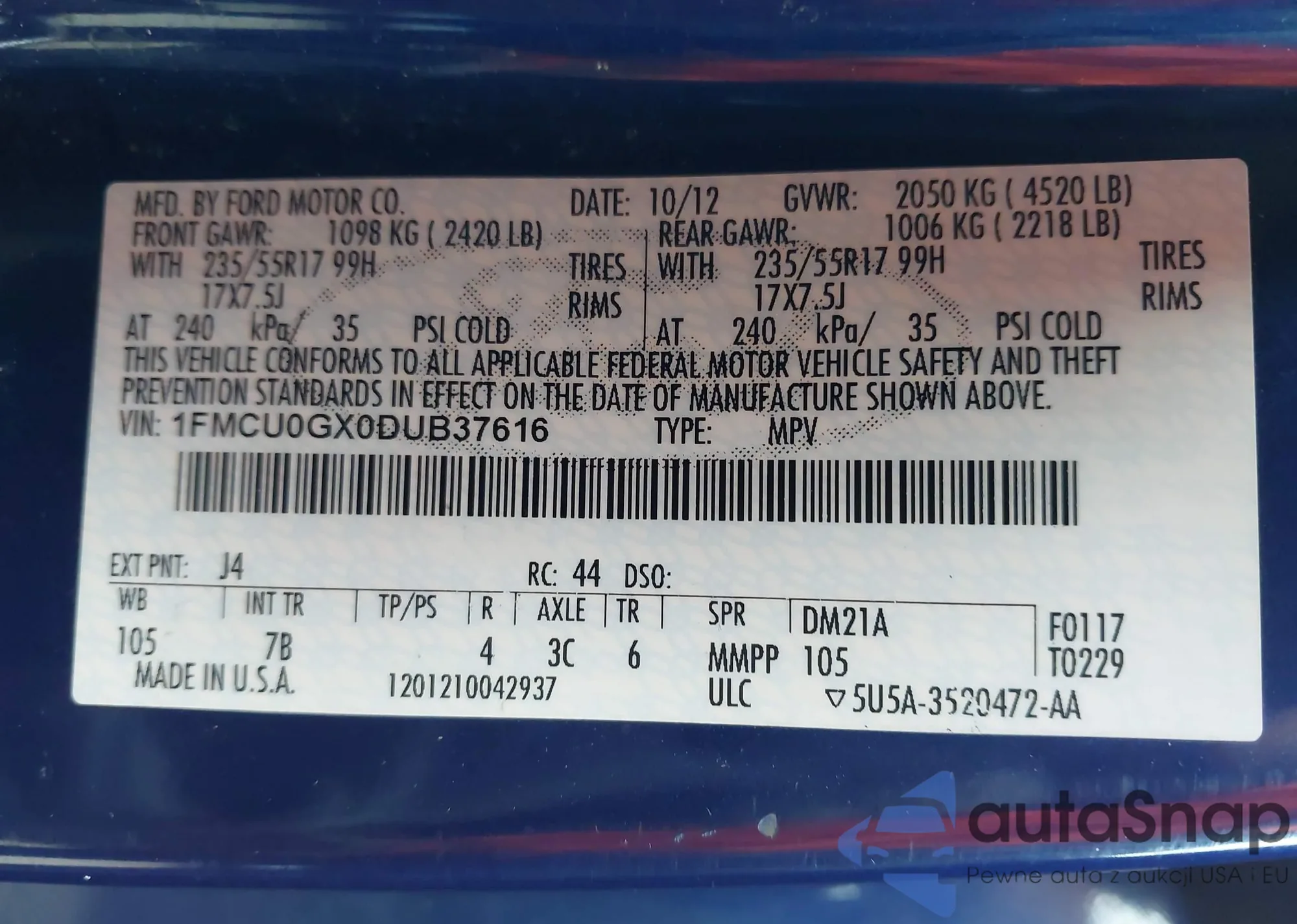• VIN VNKKTUD3XJA098629
