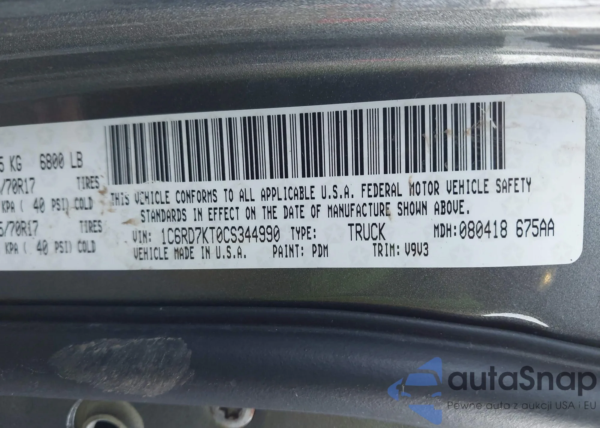 • VIN 1C6RD7KT0CS344990