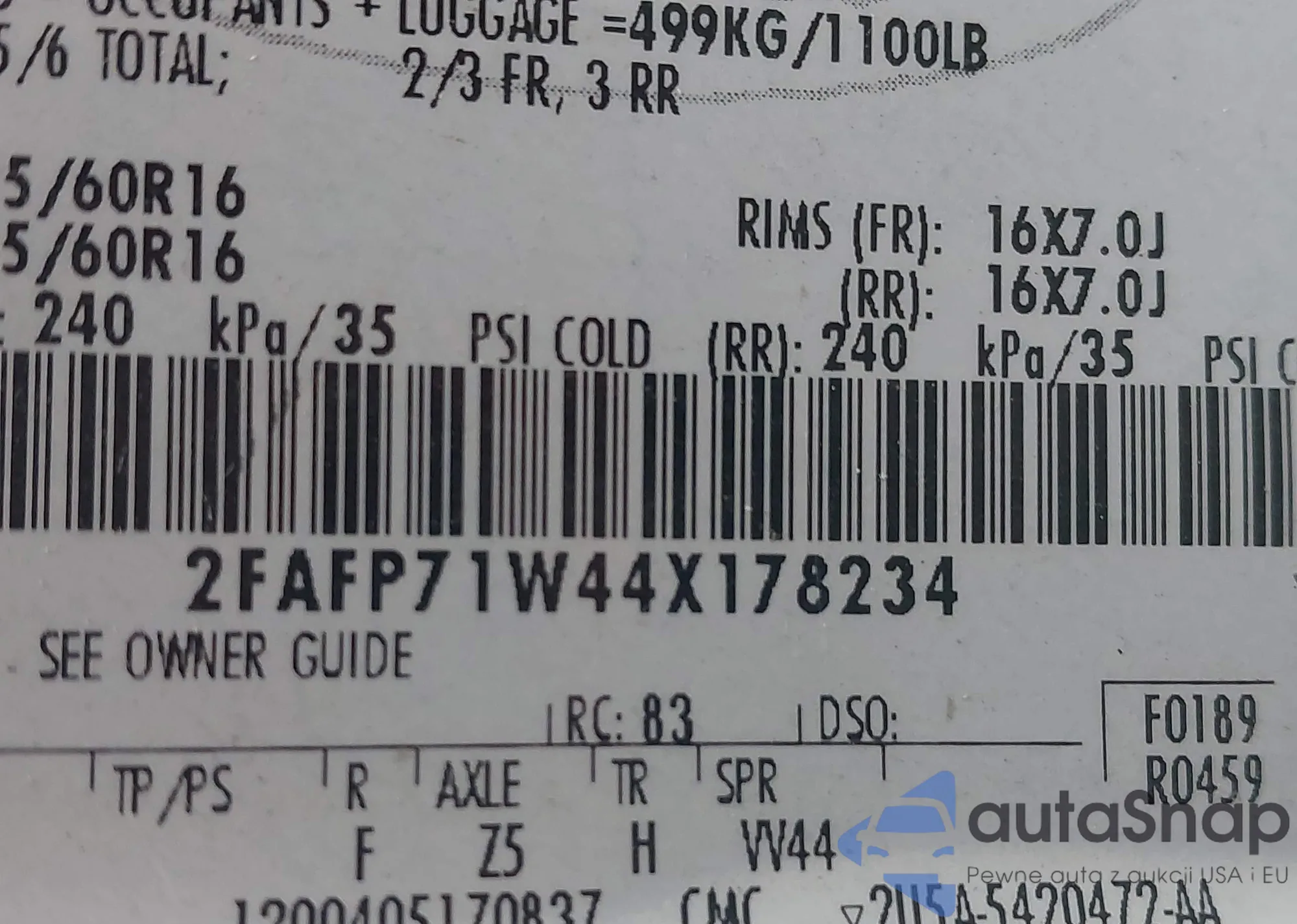 LOT: 43521464 VIN: 2FAFP71W44X178234