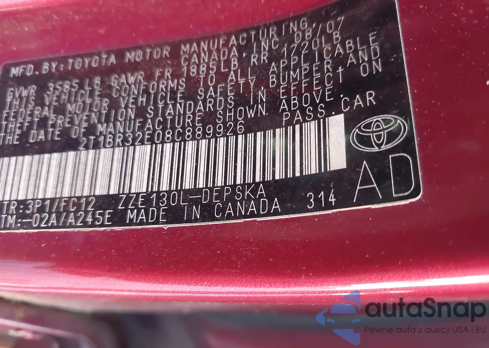 • VIN 2T1BR32E08C889926