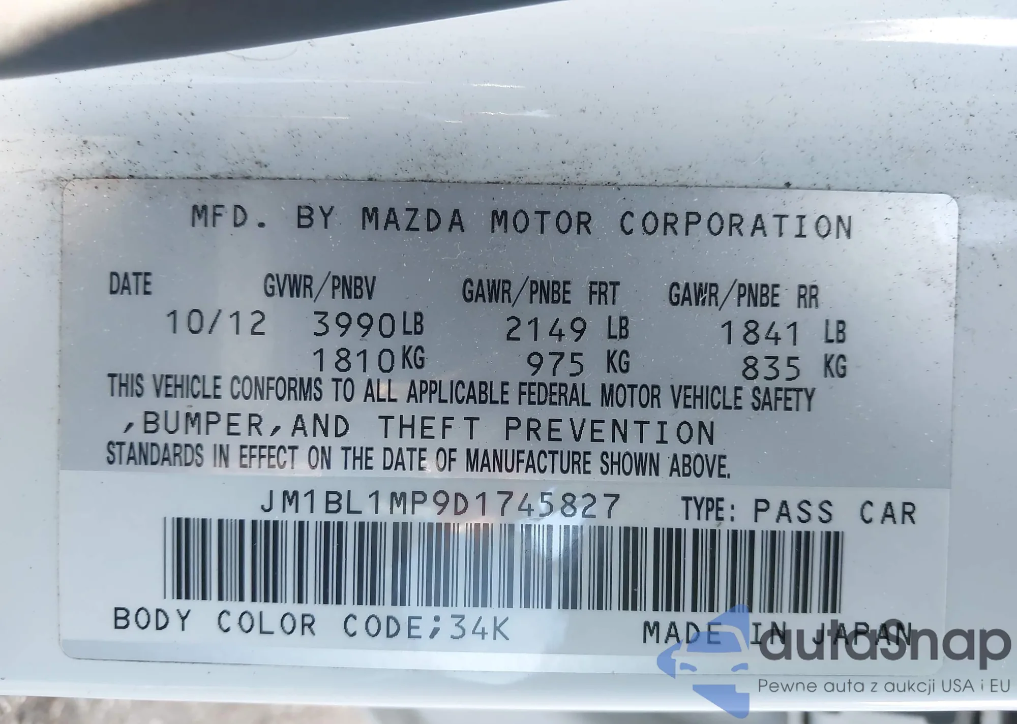 LOT: 43978151 VIN: JM1BK32F191187990