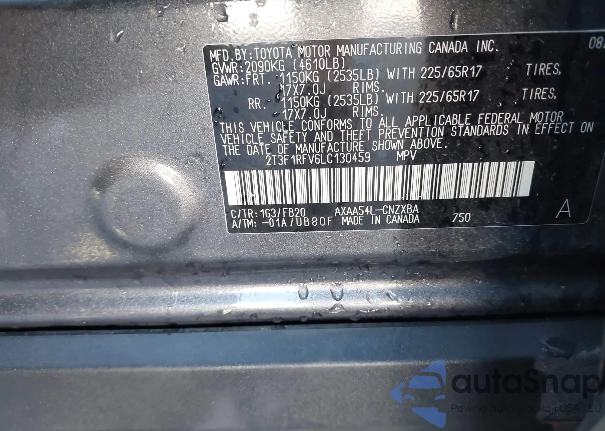 • VIN 2T3F1RFV6LC130459