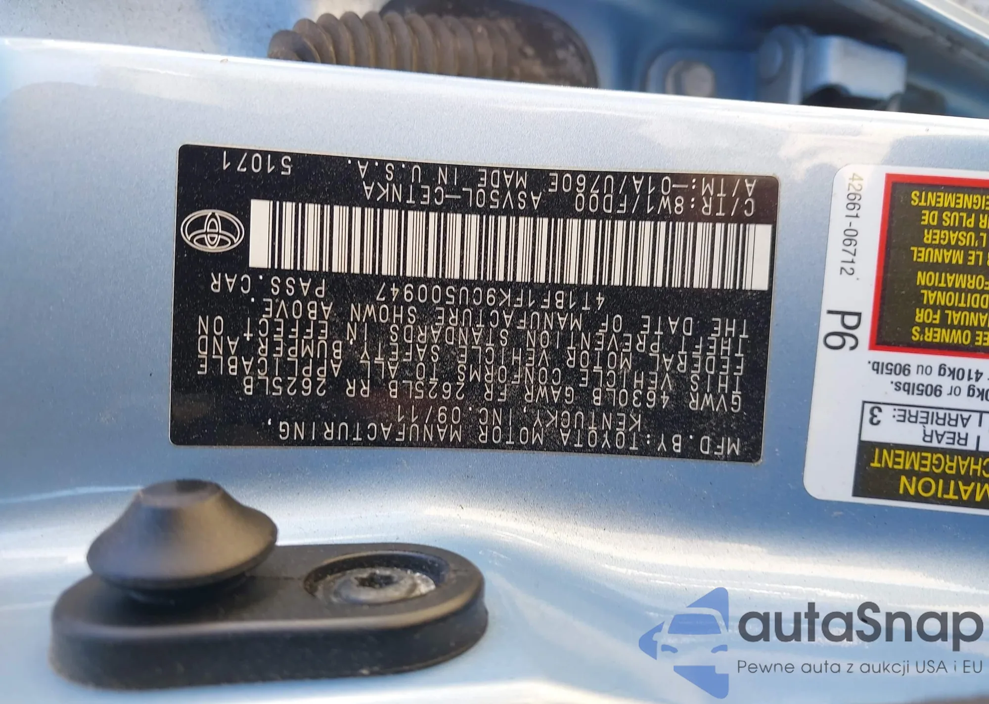 • VIN 4T1BF1FK9CU500947
