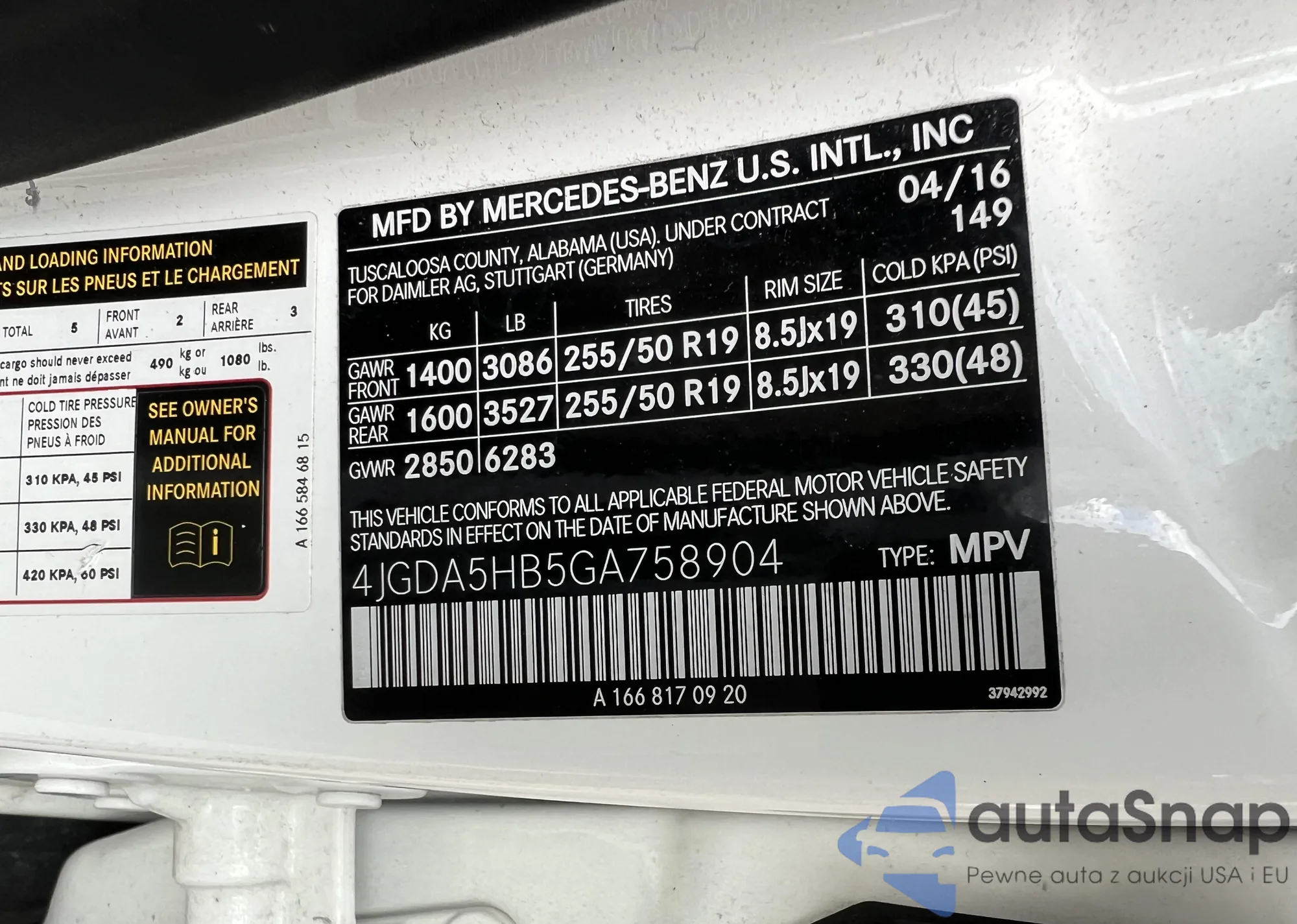 • VIN 4JGDA5HB5GA758904