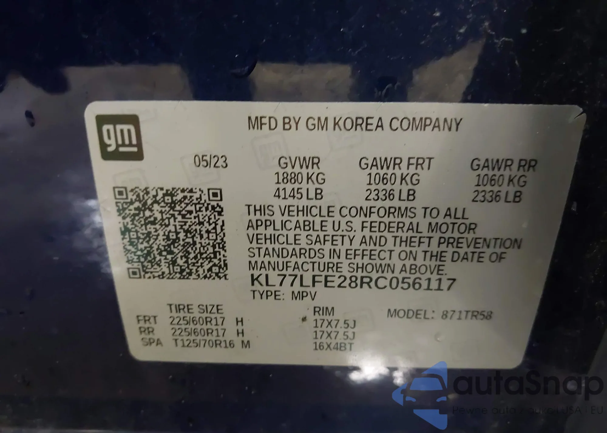 • VIN 5J8TC2H77SL031251