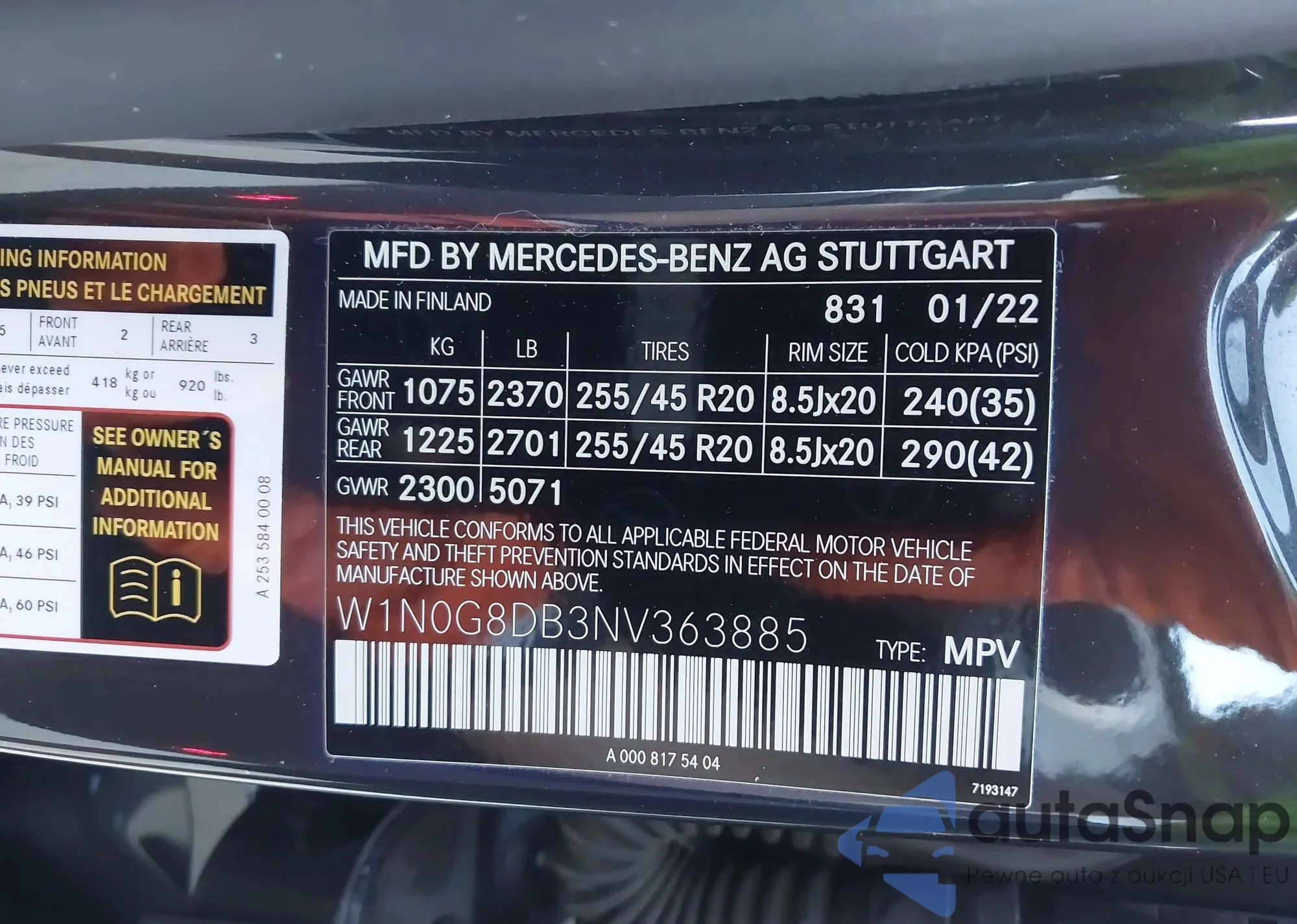 • VIN W1N0G8DB3NV363885