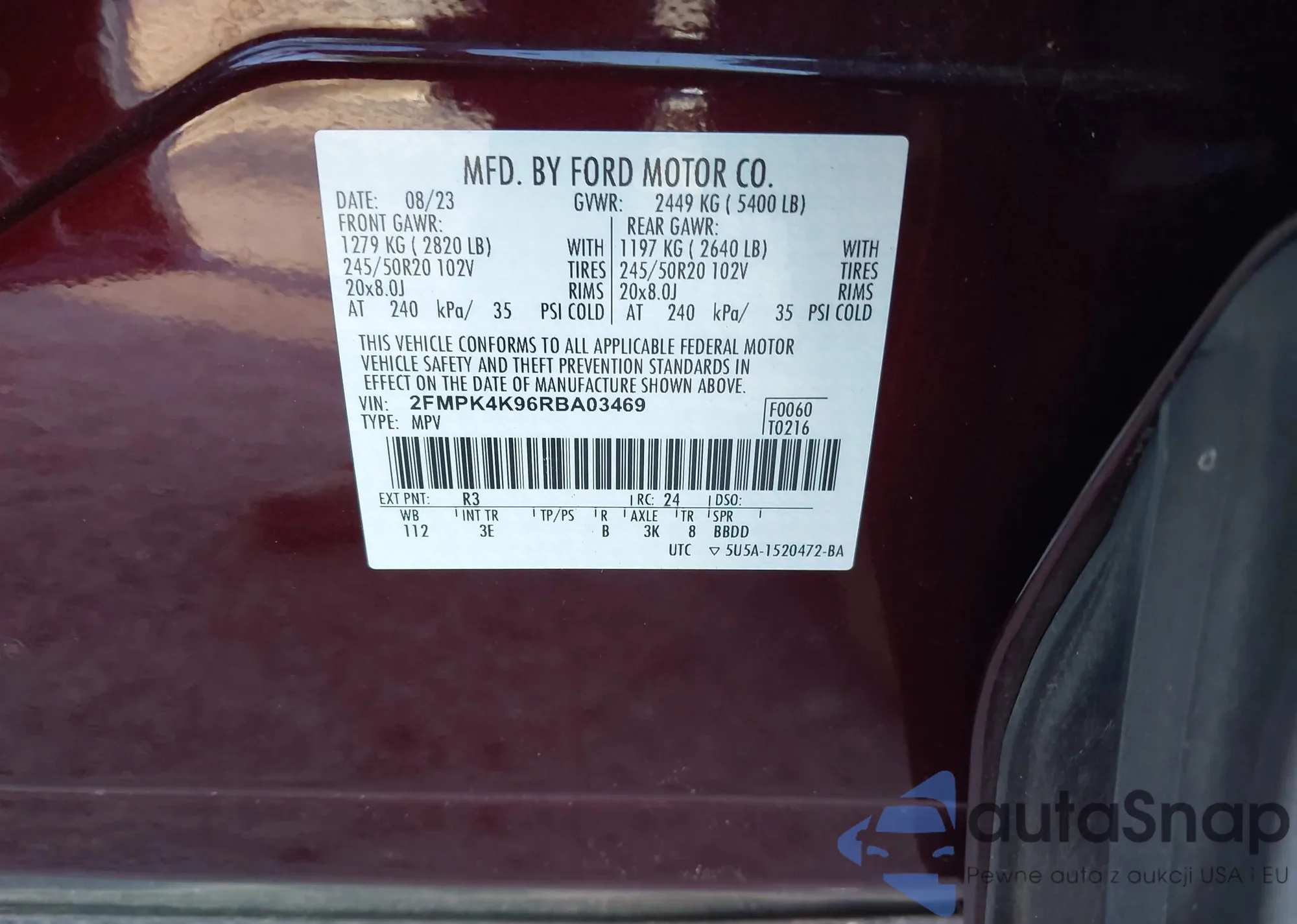 LOT: 43830014 VIN: 2T3MWRFV0KW038396