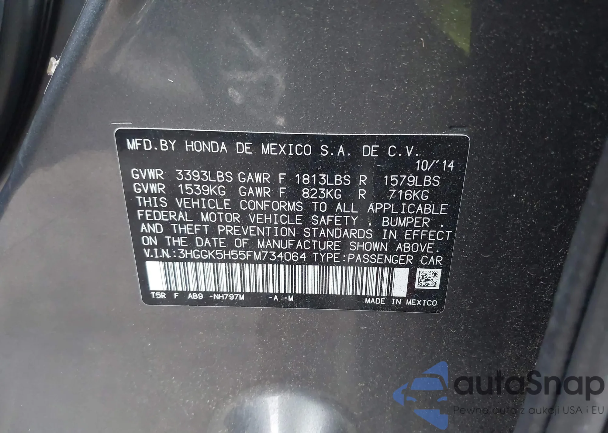 • VIN 3HGGK5H55FM734064