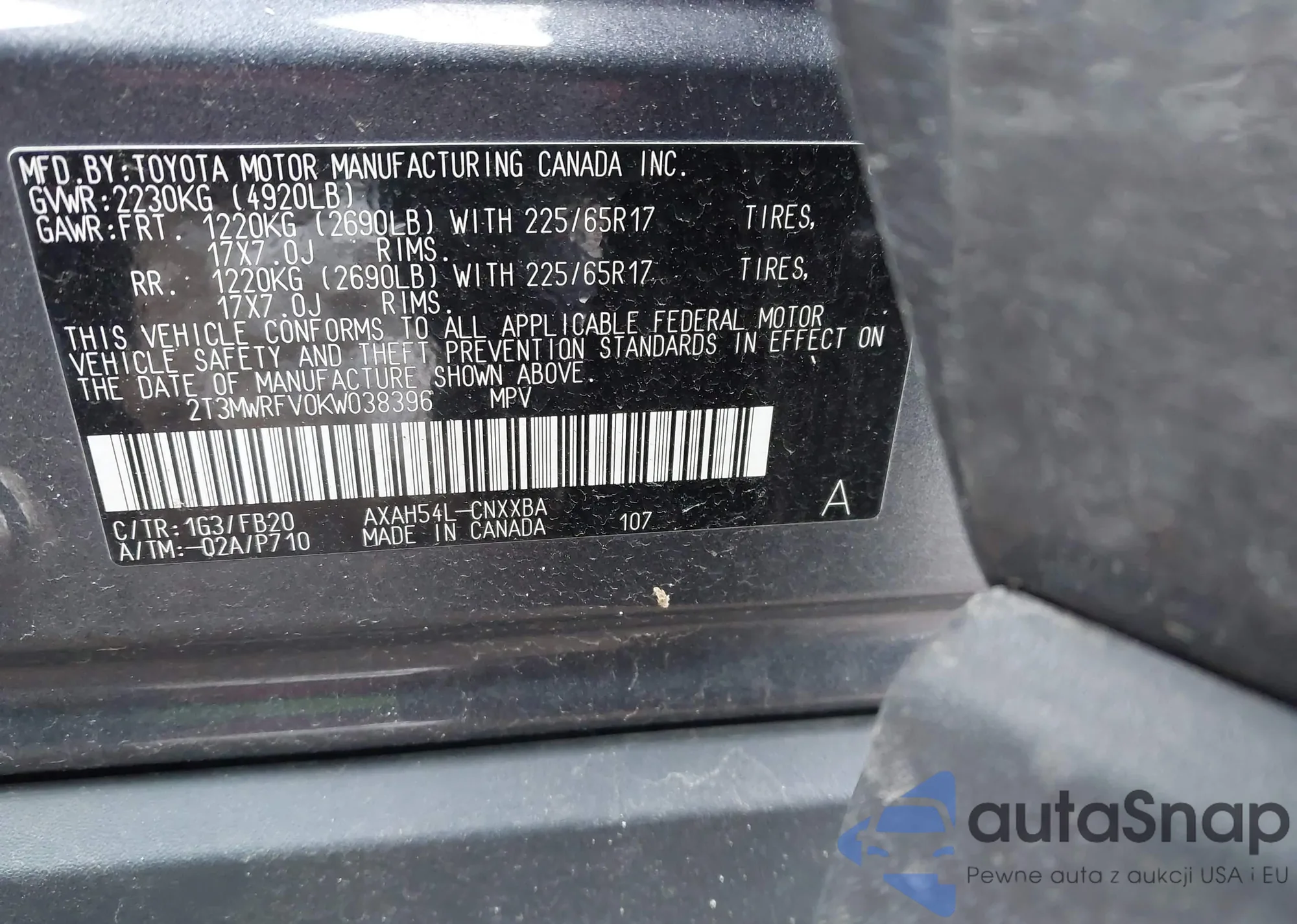 • VIN 2T3MWRFV0KW038396