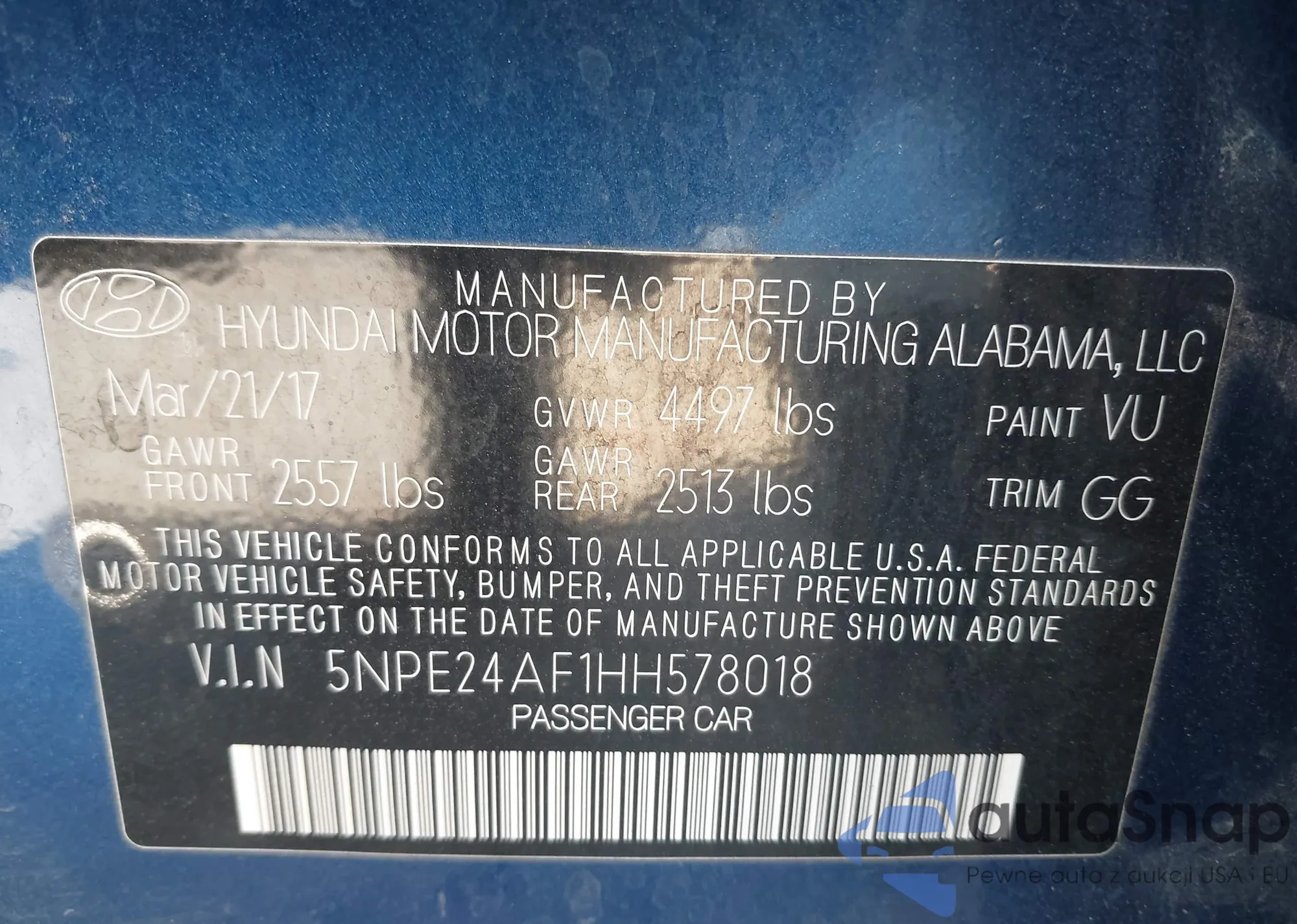 • VIN 5NPE24AF1HH578018