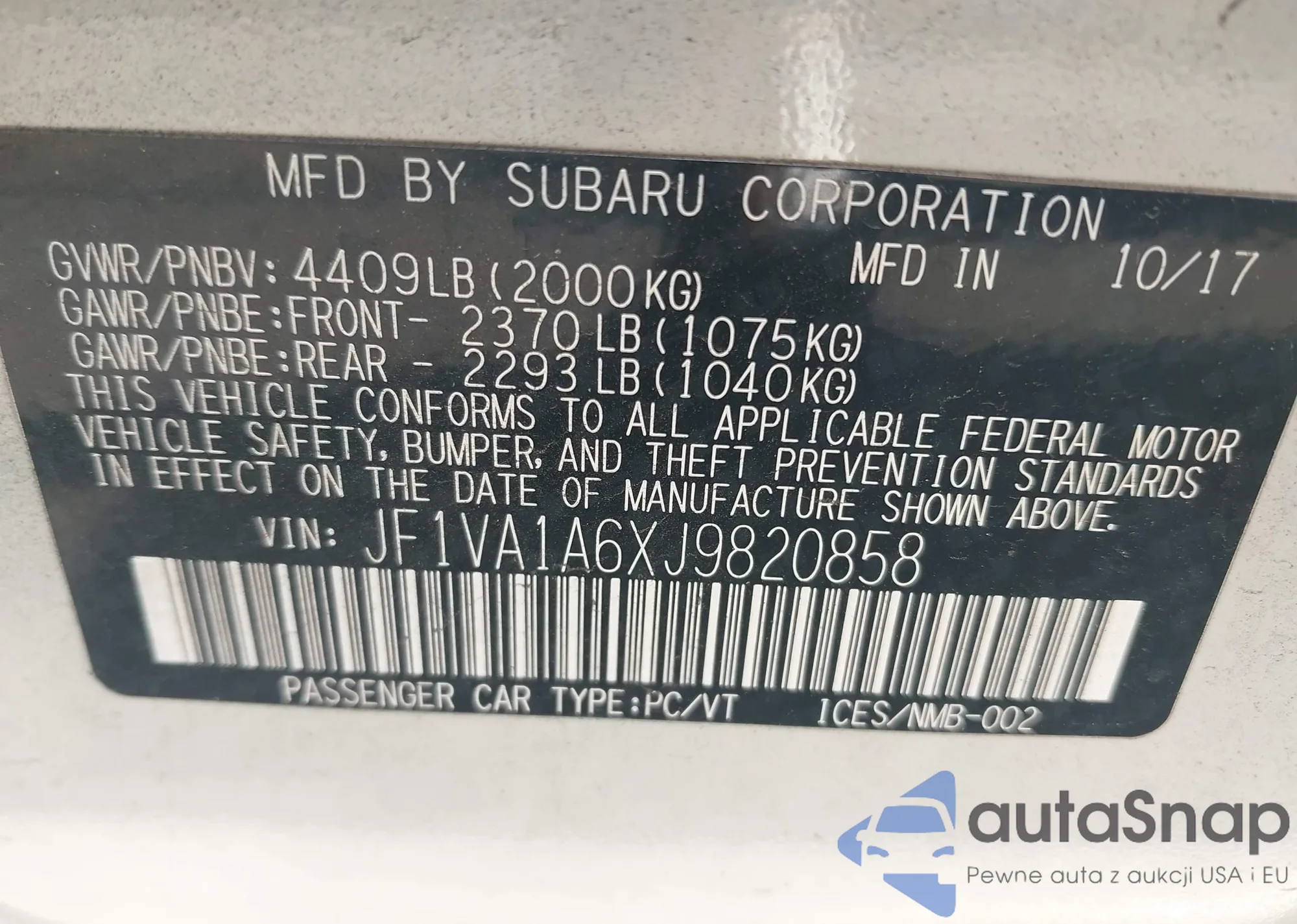 • VIN JF1VA1A6XJ9820858