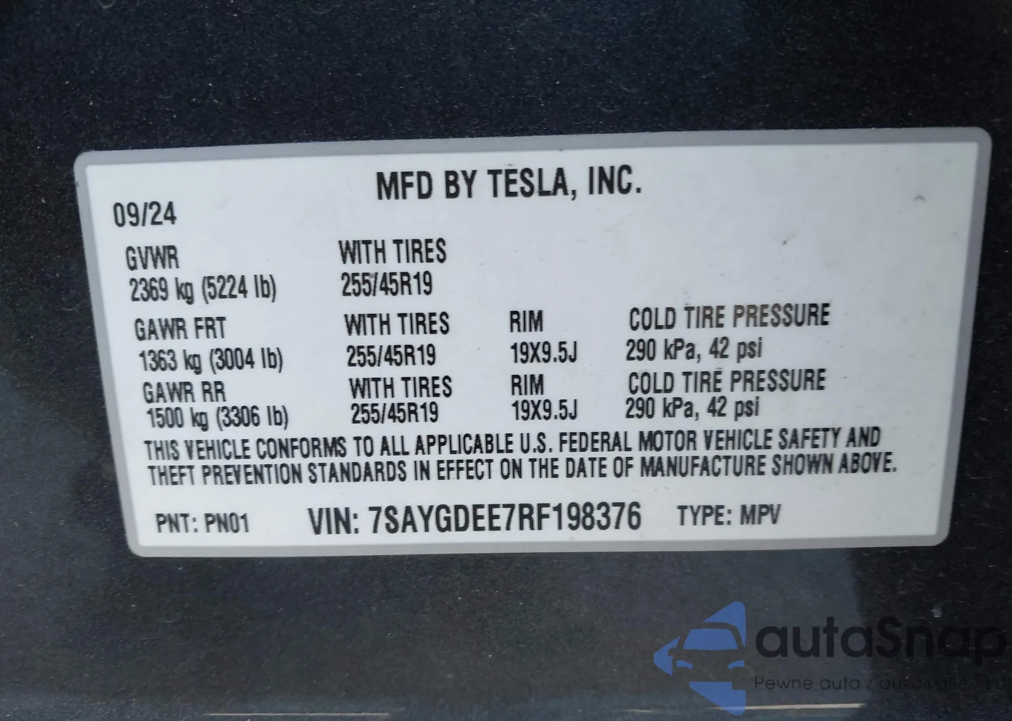 • VIN 7SAYGDEE7RF198376