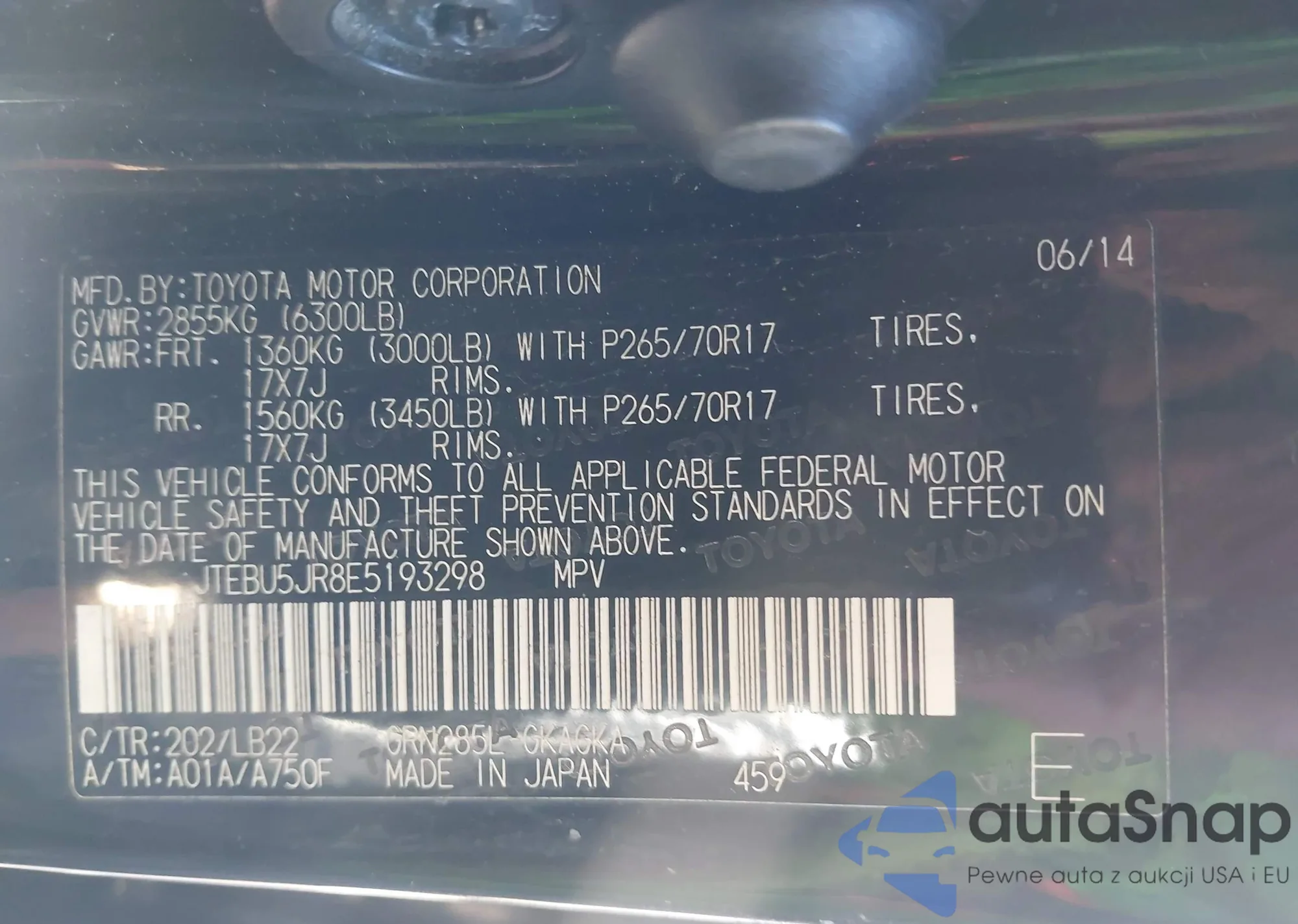 • VIN 4T1B21HK8JU503909