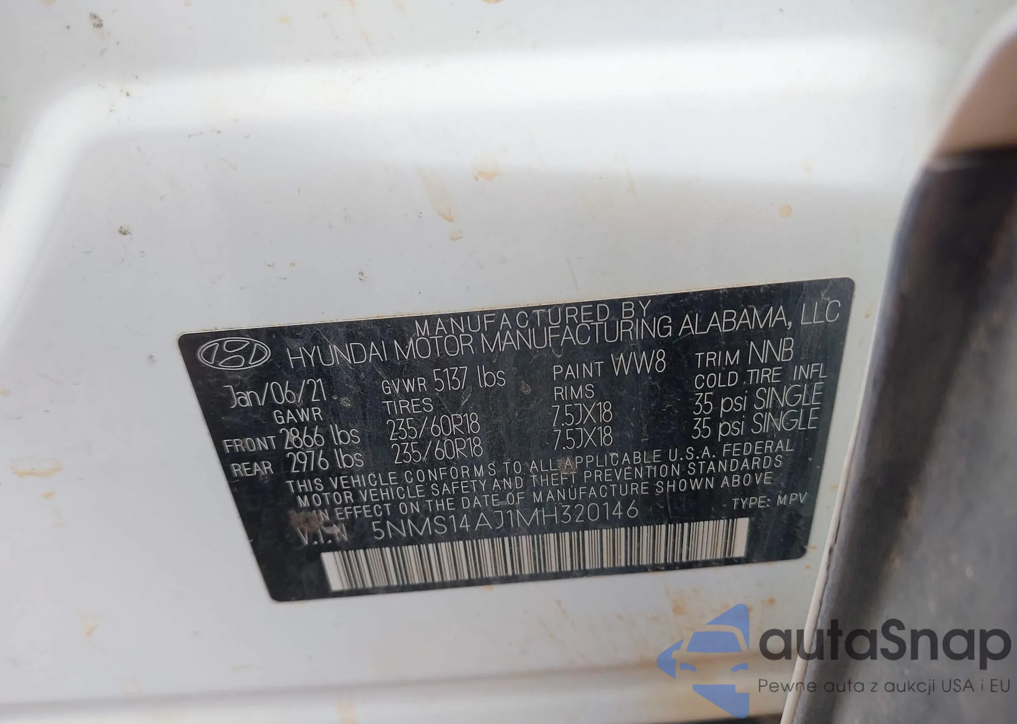 • VIN 5NMS14AJ1MH320146