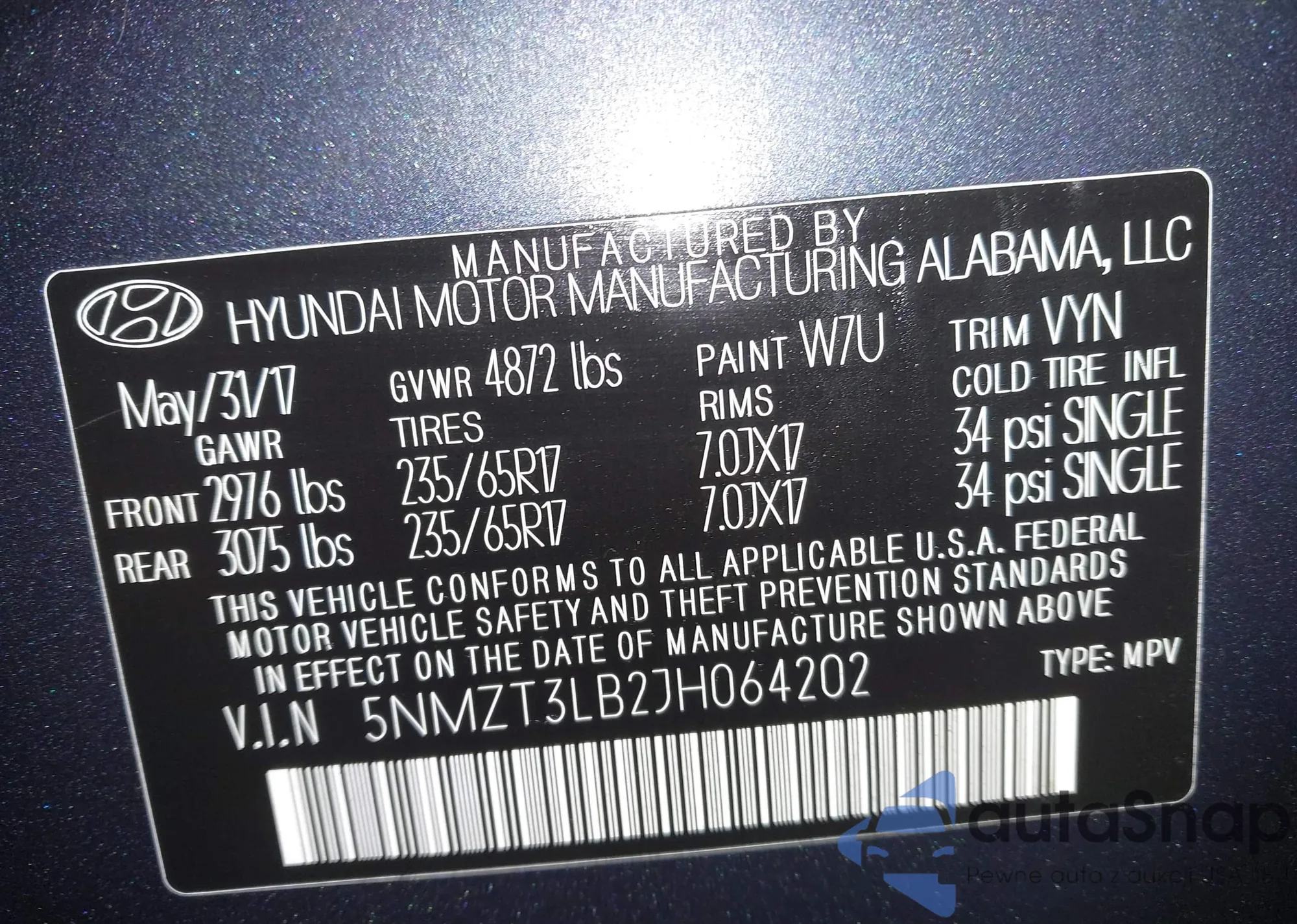 • VIN 5NMZT3LB2JH064202