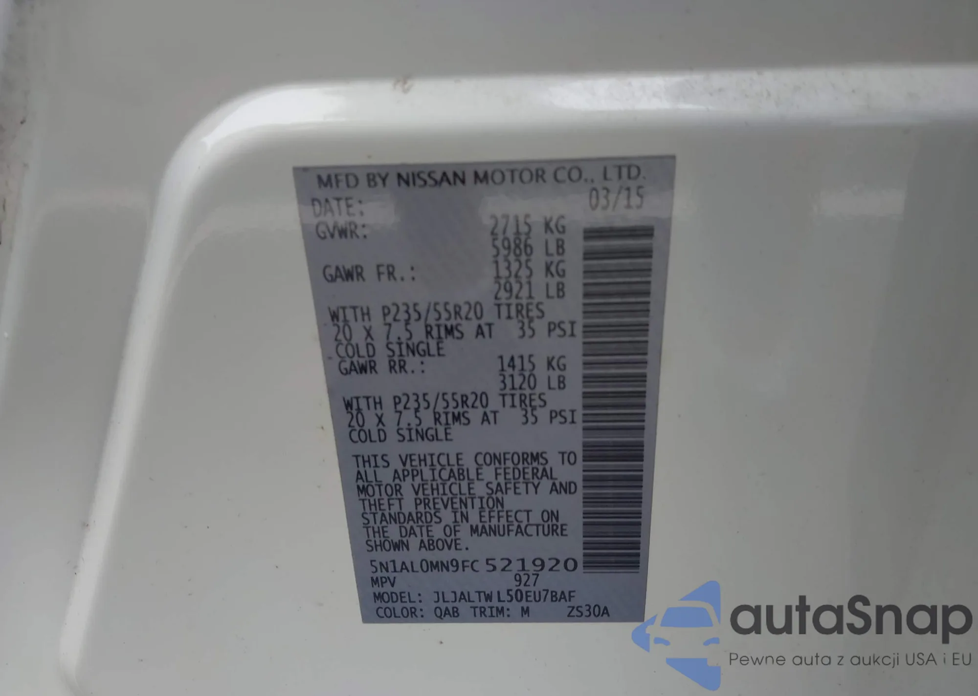 LOT: 43860004 VIN: JN8AS58V39W186448