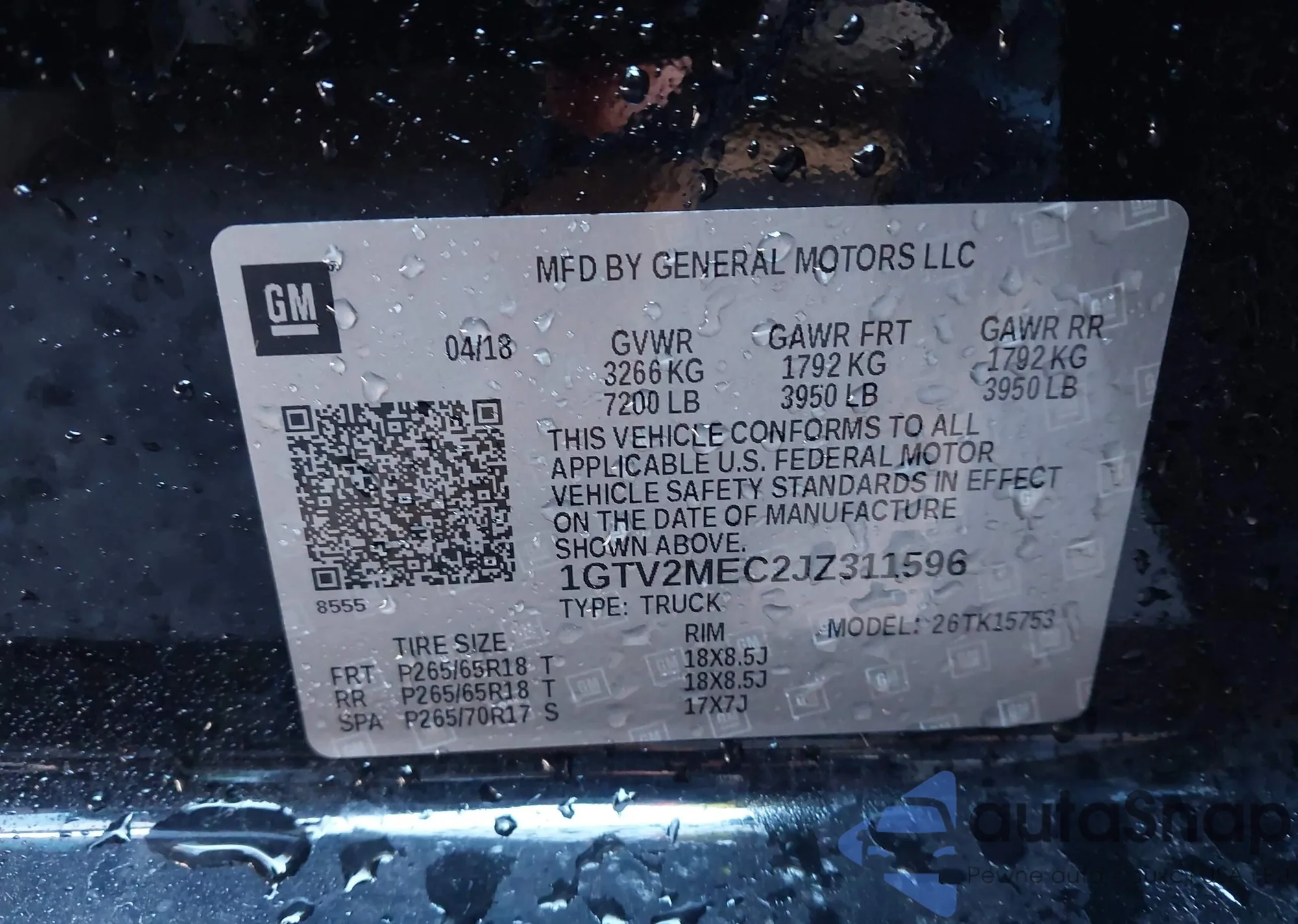 • VIN 1GTV2MEC2JZ311596