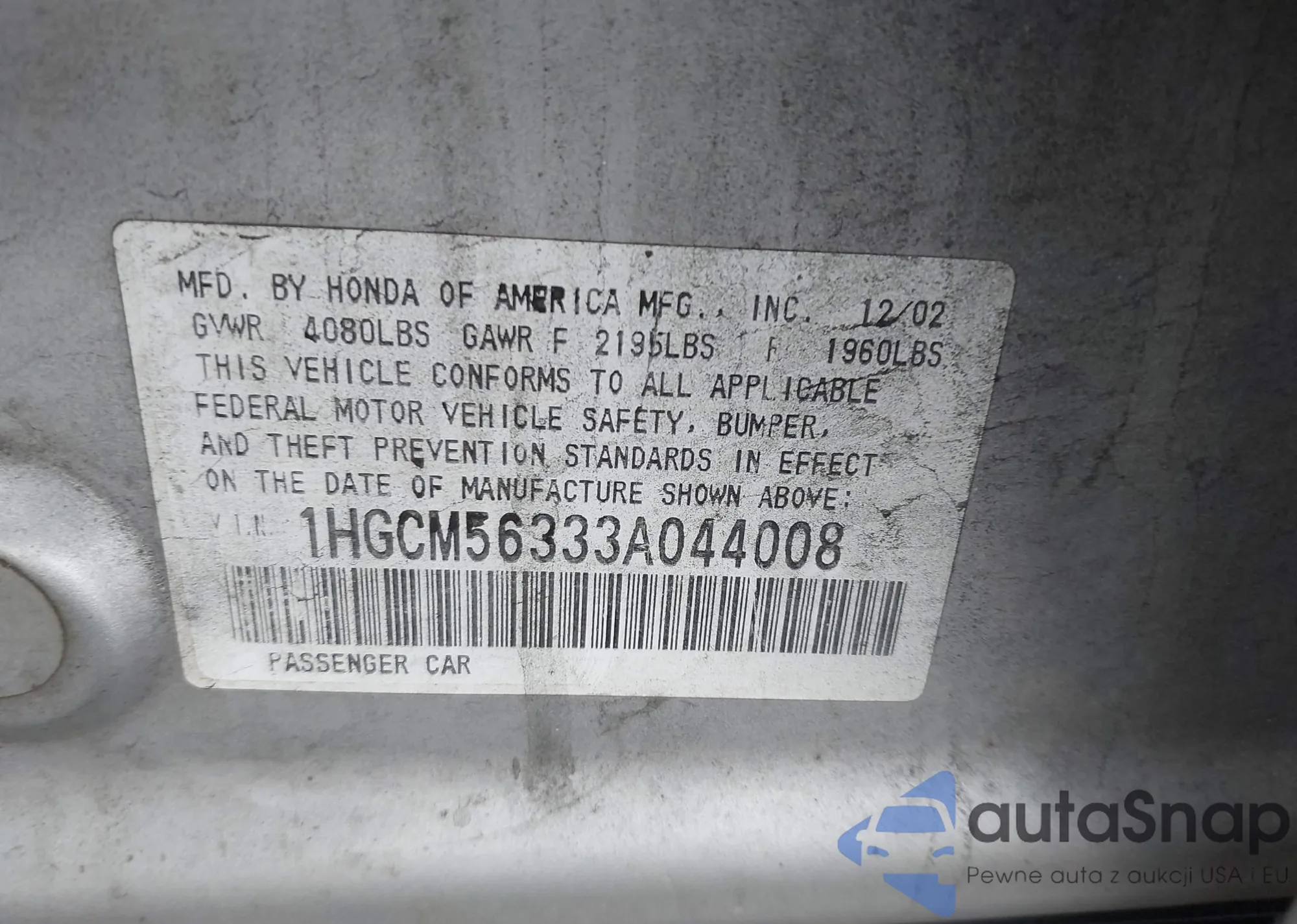 LOT: 43861788 VIN: 1HGEJ6677XL046851